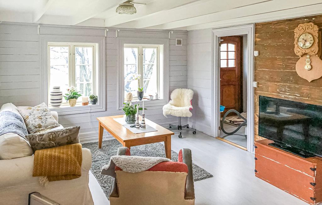 Her får I sol hele dagen om sommeren. Fra feriehuset kan I nyde den smukke udsigt over en del af den smukke fjord og de naturskønne bjerge, der omgiver den. I dette område er der gode fiskemuligheder både i fjorden og havet. Lige under feriehuset ligger en strand. Her er der også en gratis bådplads, hvor enhver lejet eller egen båd kan ligge sikkert. På regnvejrsdage er det godt at vide, at hytten har WiFi og Chromecast på fjernsynet.