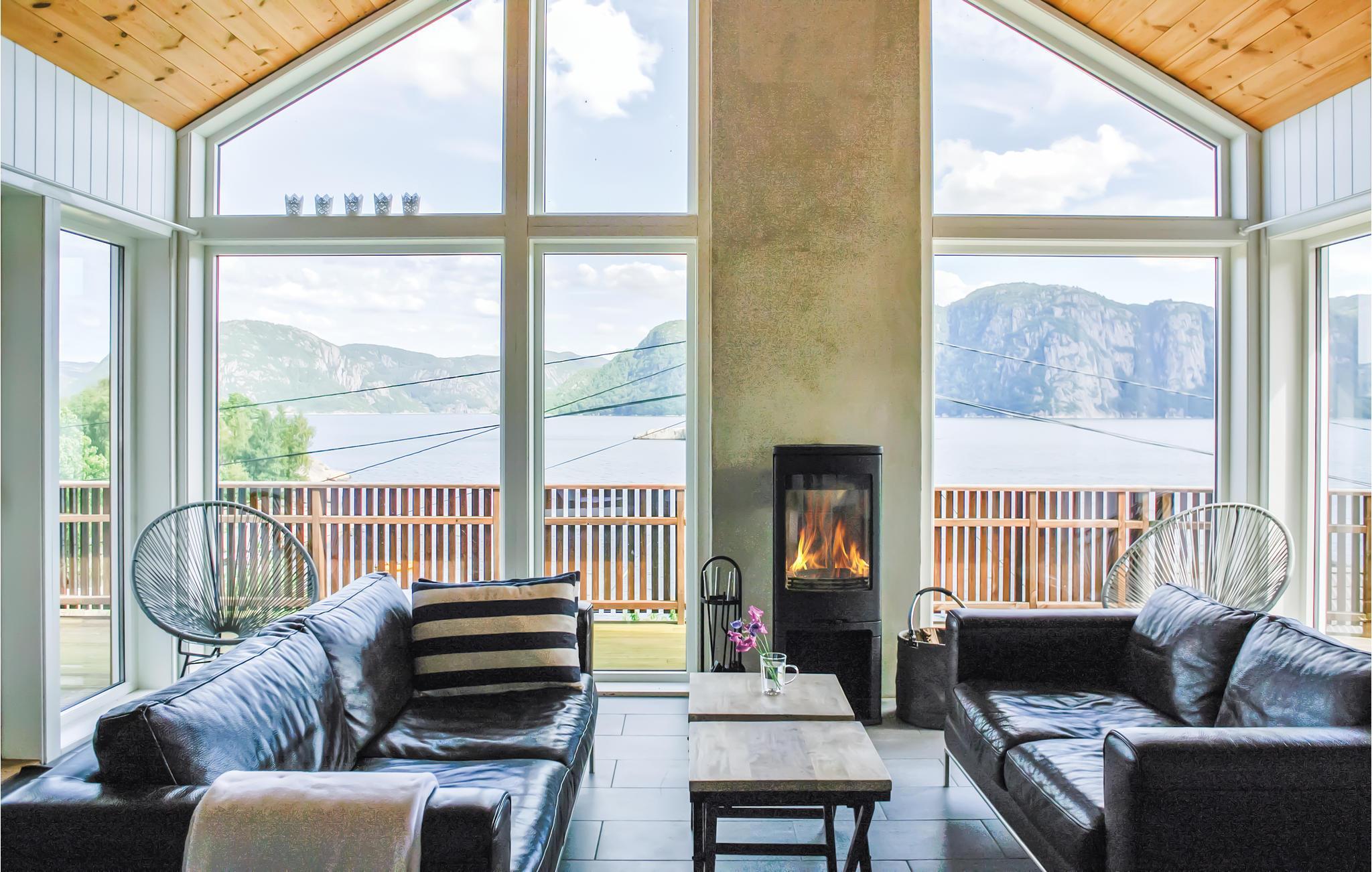 Drømmer I om at vågne op til en fantastisk udsigt over fjorden? Og kunne det friste at sidde i et varmt, udendørs spabad, mens I lægger planer for den kommende dag? Så er dette hus lige dét, I søger! Huset ligger få skridt fra fjorden, og med sin charme og komfort indbyder boligen til en herlig ferie på alle tider af året. Sved godt igennem i saunaen, inden I gør jer det behageligt i sofaerne og nyder den spektakulære udsigt gennem panoramavinduerne. Fyr op i brændeovnen og sæt jer med hver jeres bog til lyden af flammernes stille knitren.
