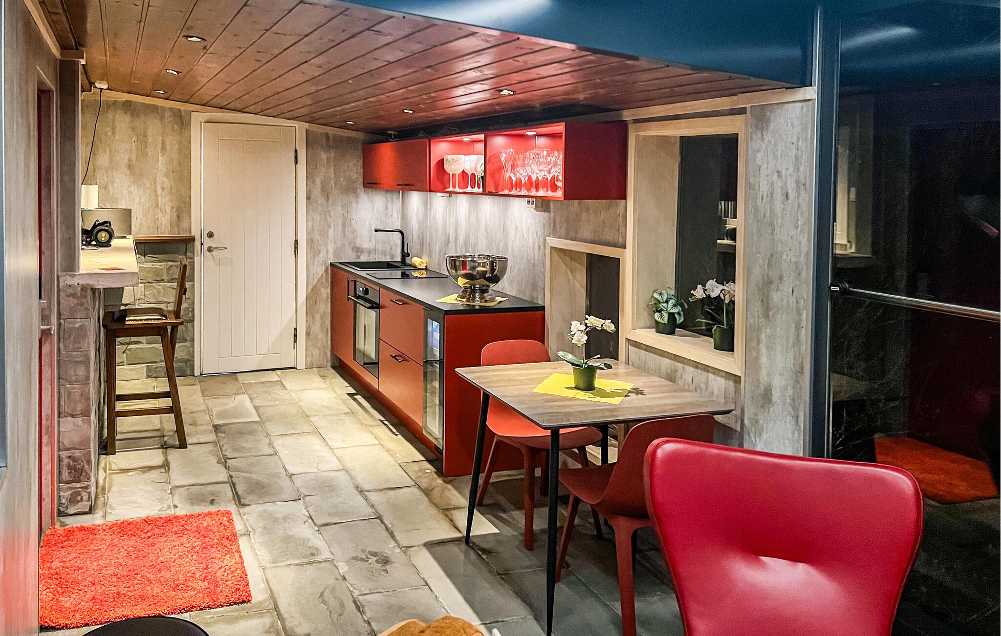 På den rummelige tagterrasse inviterer spabadet, hængekøjerne og et udendørs køkken jer til afslappende timer i solen. Nyd den vidunderlige udsigt eller tilbring tid i den hyggelige udendørs lounge.