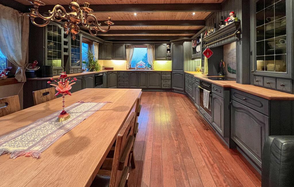 I dette rummelige og luksuriøse feriehus nær Vanse kan I tilbringe nogle uforglemmelige dage i en indbydende atmosfære. Husets hjerte er det indendørs poolområde, som ikke kun består af en stor pool, men også komfortable siddepladser og afslapningsstole foran saunaen. Lige ved siden af ??finder I en stilfuld bar med masser af siddepladser, et poolbord og en projektor med lærred, ideel til for eksempel at se en fodboldkamp sammen. Der er også flere stilfuldt indrettede stuer, hvor I kan slappe af. Pejsen skaber en hyggelig atmosfære på køligere dage. Det store køkken lægger op til at fremtrylle lækre måltider, som I kan nyde ved det indbydende spisebord.