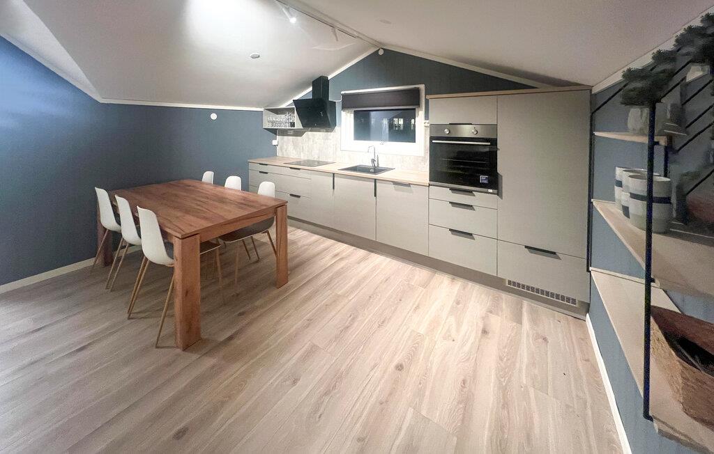 Denne moderne ferielejlighed kombinerer elegant design med hjemlig komfort. Glæd jer til stemningsfulde madlavningsaftener i det åbne køkken og hyggelige måltider ved det indbydende spisebord. Føl jer godt tilpas på det hyggelige sofaområde i den stilfuldt indrettede stue, stream en film eller afslut aftenen med et glas vin.