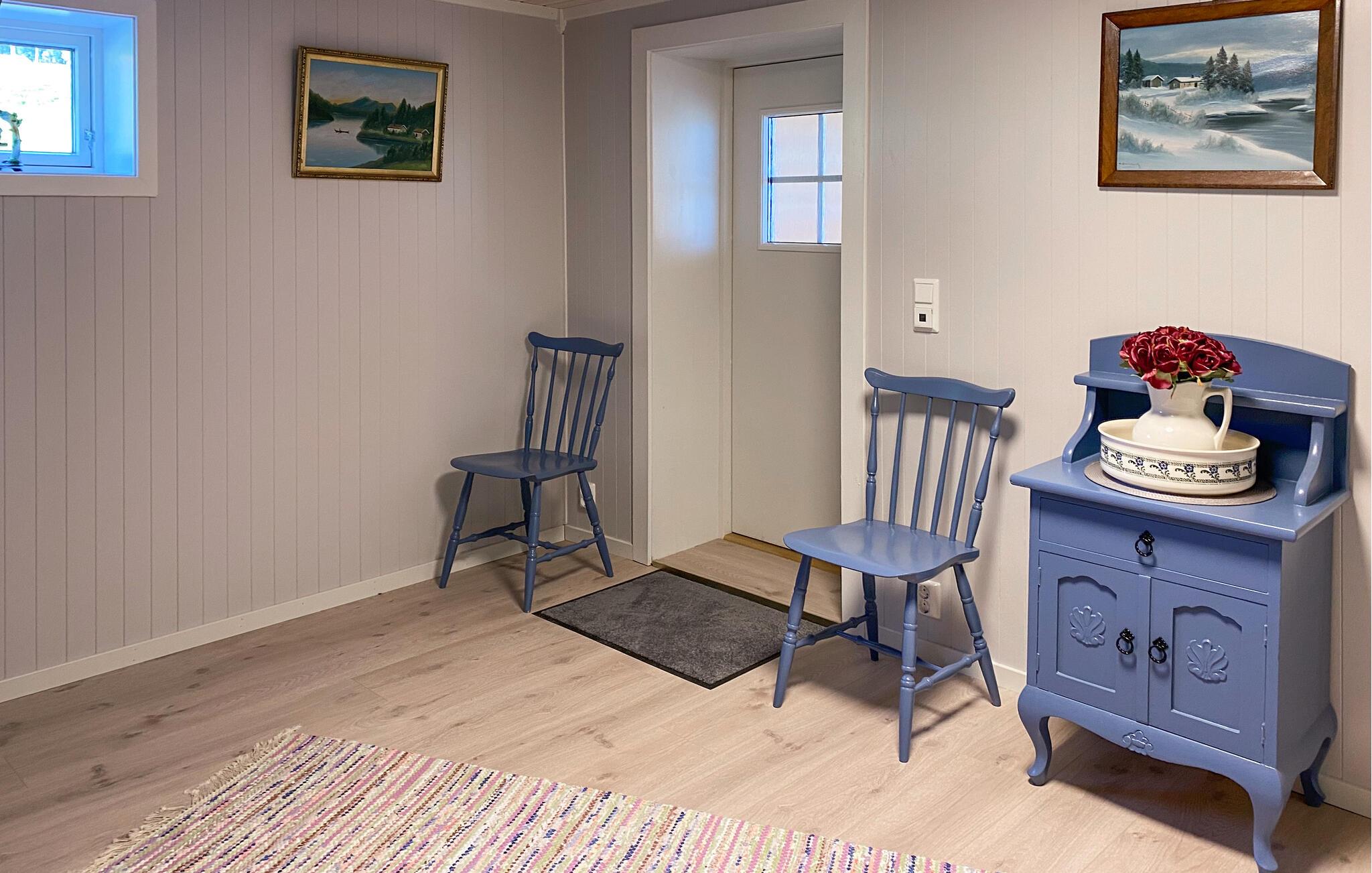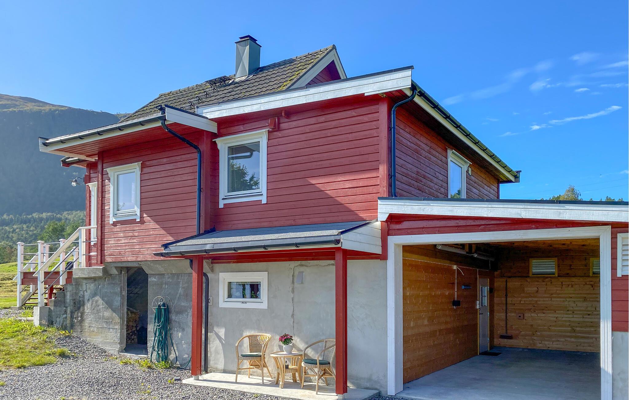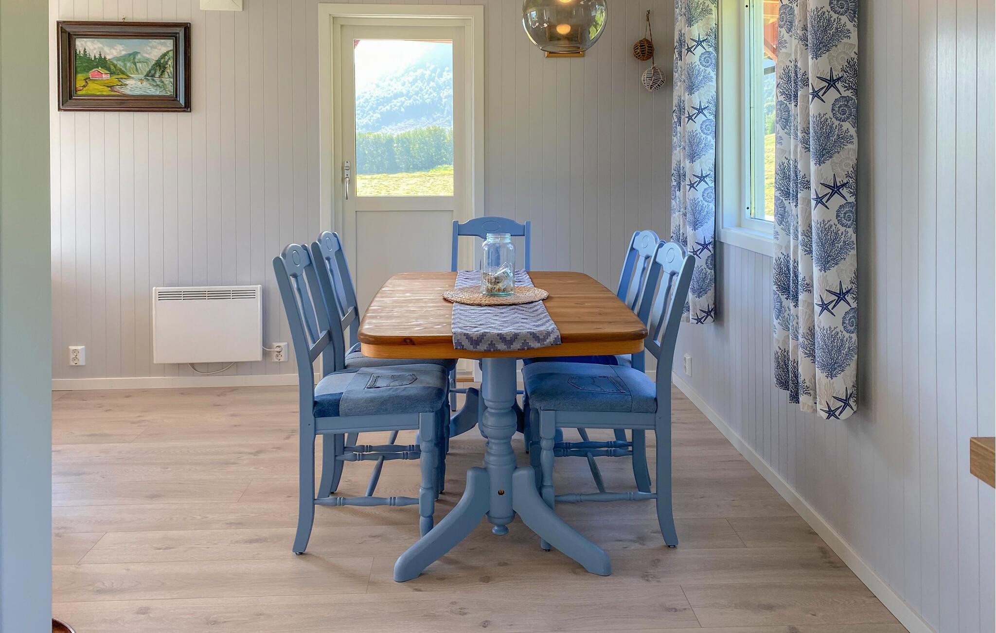 På den overdækkede terrasse, udstyret med et bord og komfortable stole, kan I nyde jeres morgenkaffe i den friske luft og starte dagen afslappet. Benyt lejligheden til vandreture i området, eller lej en båd og udforsk jeres ferieregion fra vandet. Kast også jeres fiskestang i vandet og oplev lystfiskeri i Norge. Den omkringliggende natur byder på mange muligheder for udendørsaktiviteter og sørger for afslapning og rekreation.