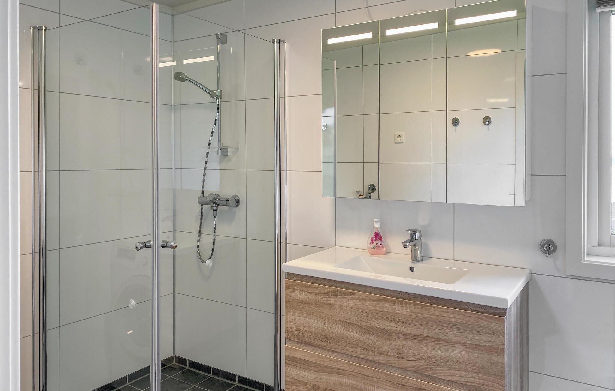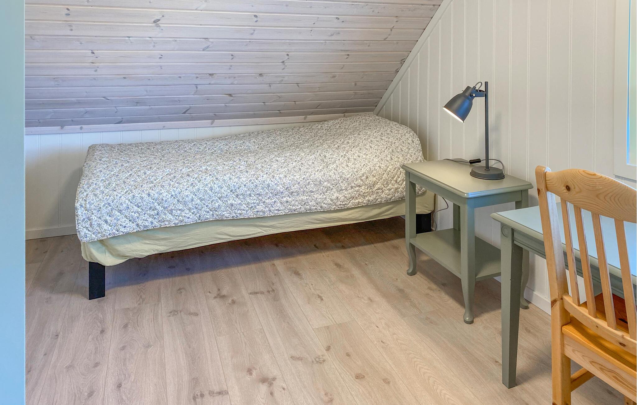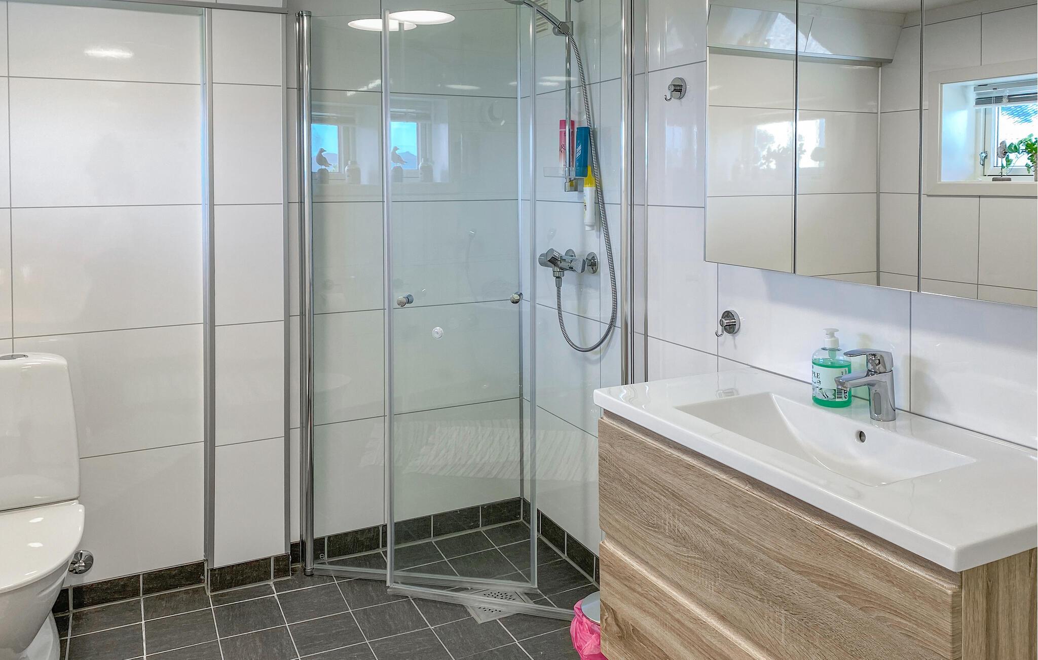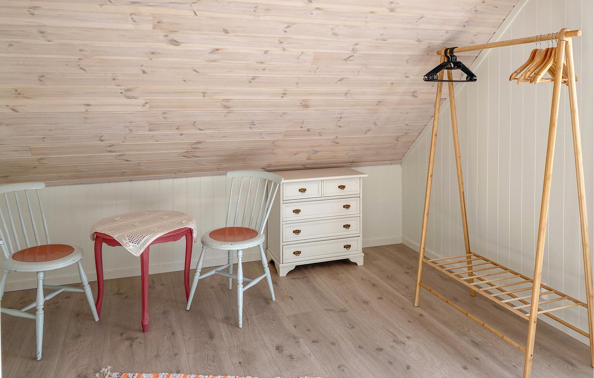 På den overdækkede terrasse, udstyret med et bord og komfortable stole, kan I nyde jeres morgenkaffe i den friske luft og starte dagen afslappet. Benyt lejligheden til vandreture i området, eller lej en båd og udforsk jeres ferieregion fra vandet. Kast også jeres fiskestang i vandet og oplev lystfiskeri i Norge. Den omkringliggende natur byder på mange muligheder for udendørsaktiviteter og sørger for afslapning og rekreation.