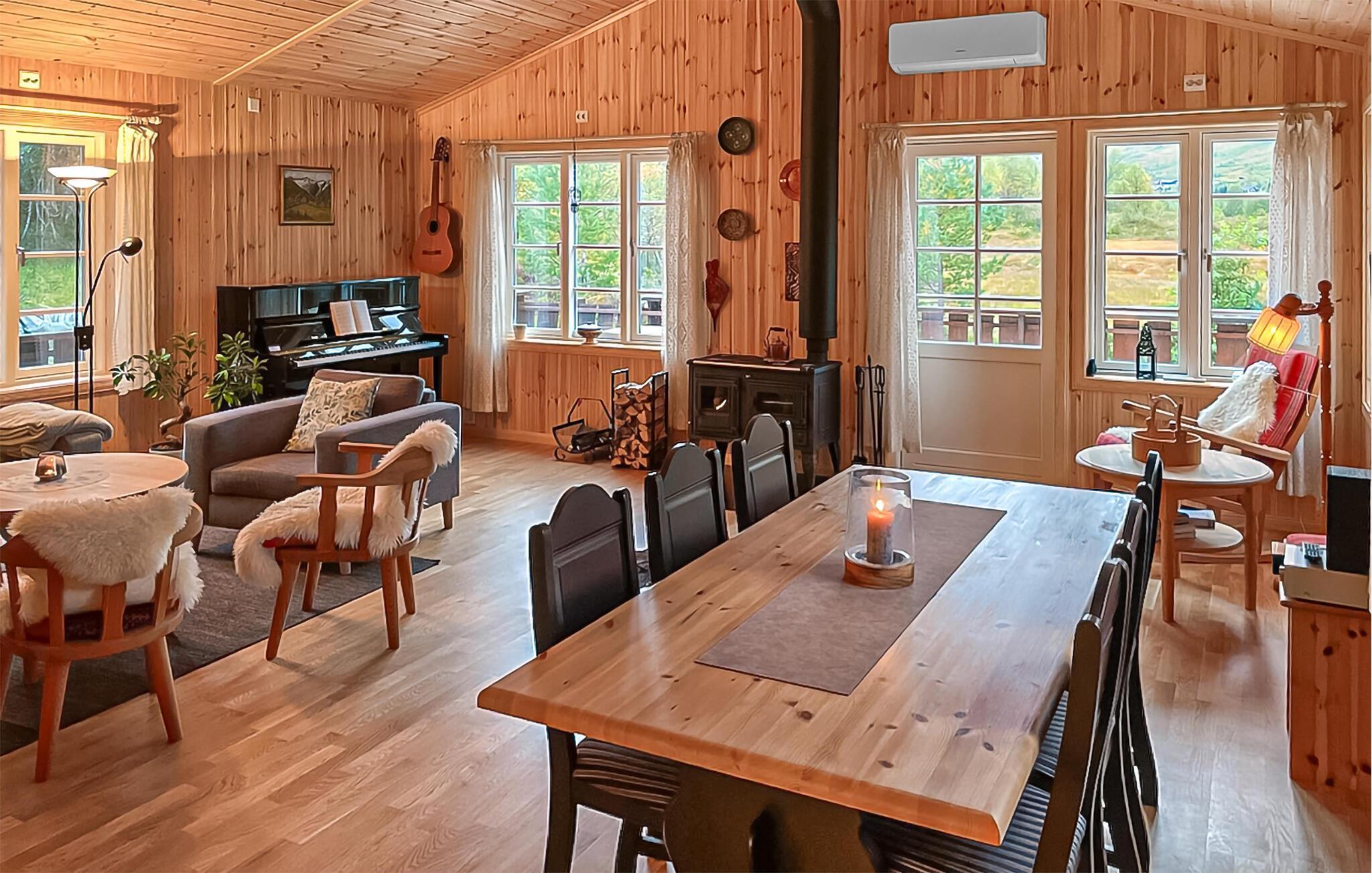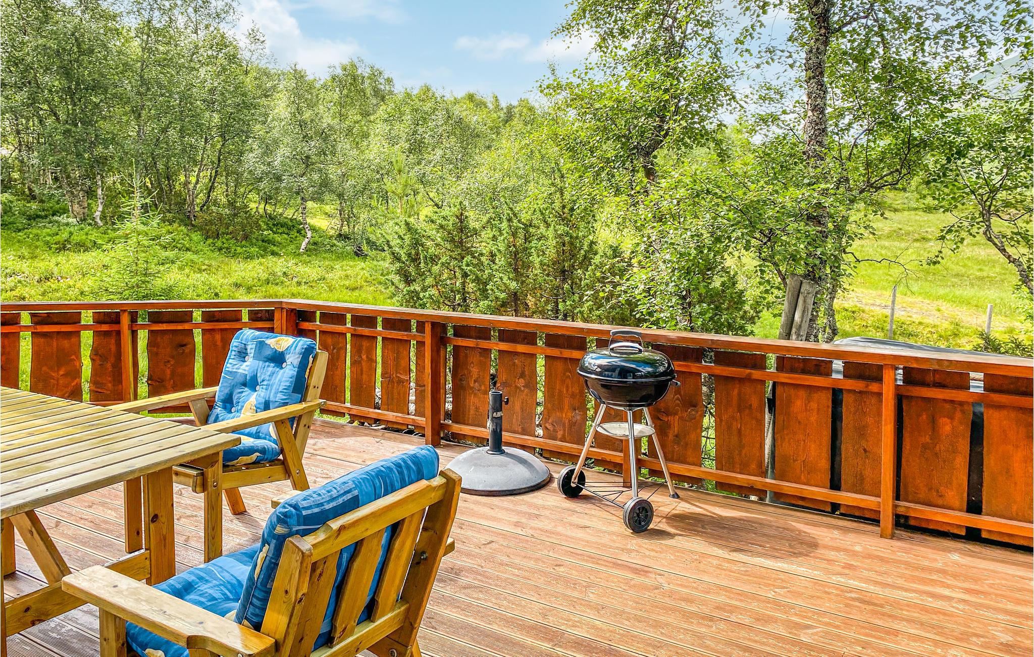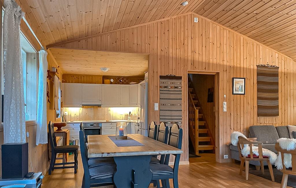 Dette skønne feriehus ligger i grønne omgivelser. Indretningen er hyggelig og hjemlig, så her får I det godt. Slap af foran den knitrende ild i pejsen, mens I slapper af med hyggelige aktiviteter efter en lang dag på farten. Der er mange bøger og spil tilgængelige, som I kan benytte jer af. På terrassen står der en grill klar til sommerens lune aftener, hvor I nyde solen og tonerne af fuglesang.