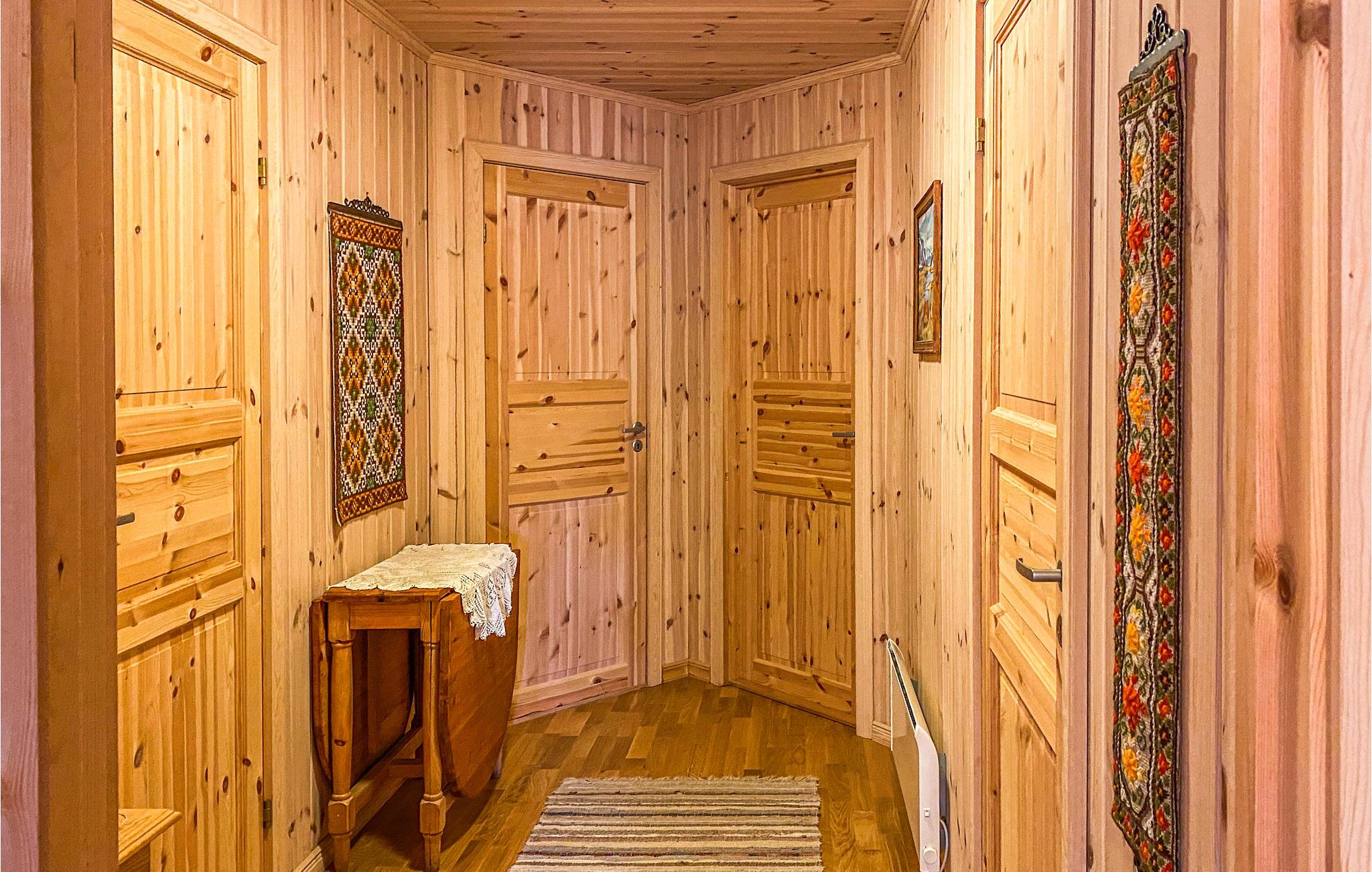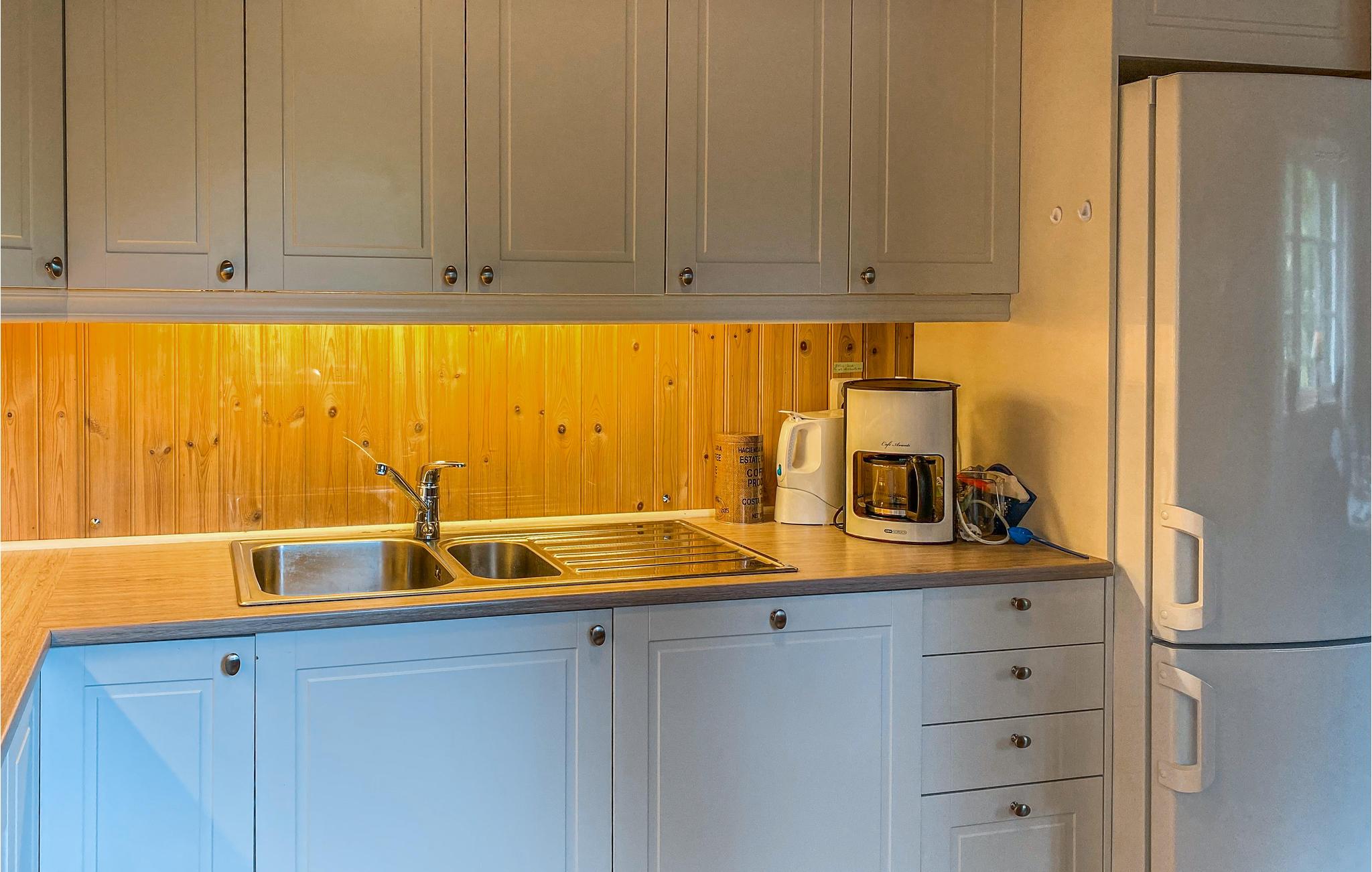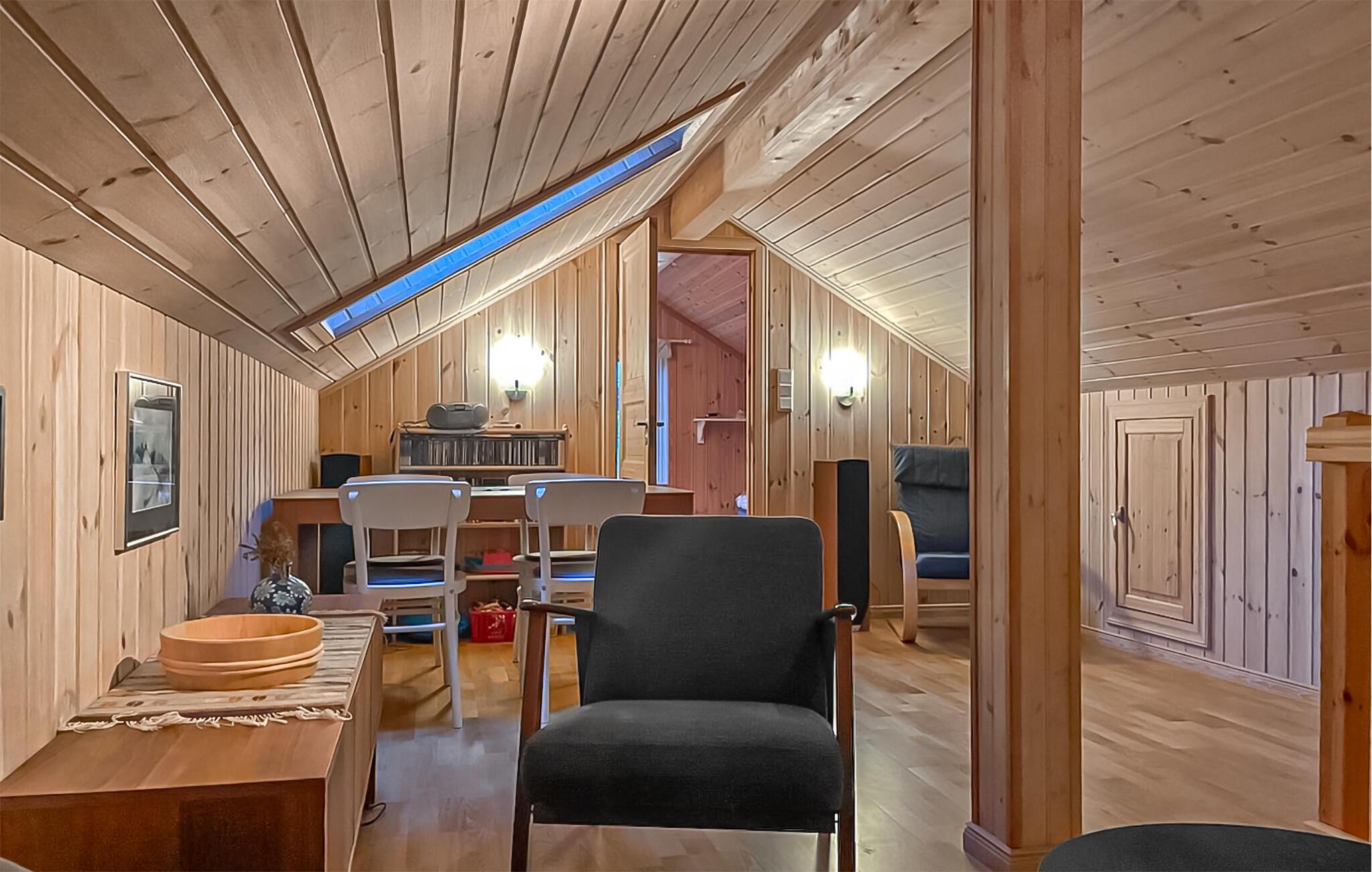 Dette skønne feriehus ligger i grønne omgivelser. Indretningen er hyggelig og hjemlig, så her får I det godt. Slap af foran den knitrende ild i pejsen, mens I slapper af med hyggelige aktiviteter efter en lang dag på farten. Der er mange bøger og spil tilgængelige, som I kan benytte jer af. På terrassen står der en grill klar til sommerens lune aftener, hvor I nyde solen og tonerne af fuglesang.