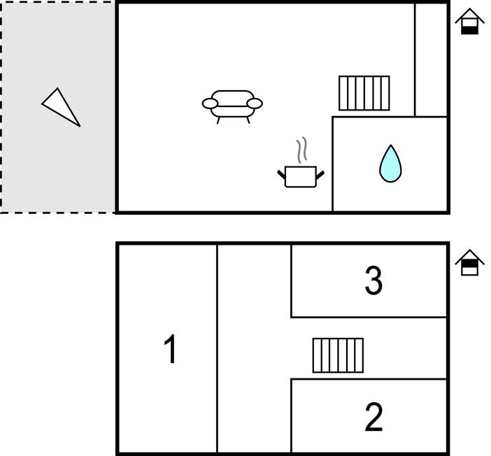 Soveværelse (nr. 1) - 1 Soveplads. (Enkeltseng(e)). 2 Sovepladser. (Dobbeltseng(e)).