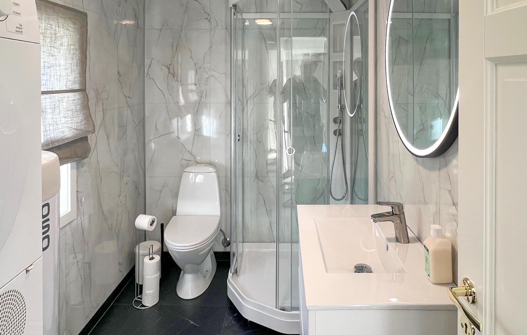 Badeværelse (nr. 1) - WC. Varmt og koldt vand. Bruser