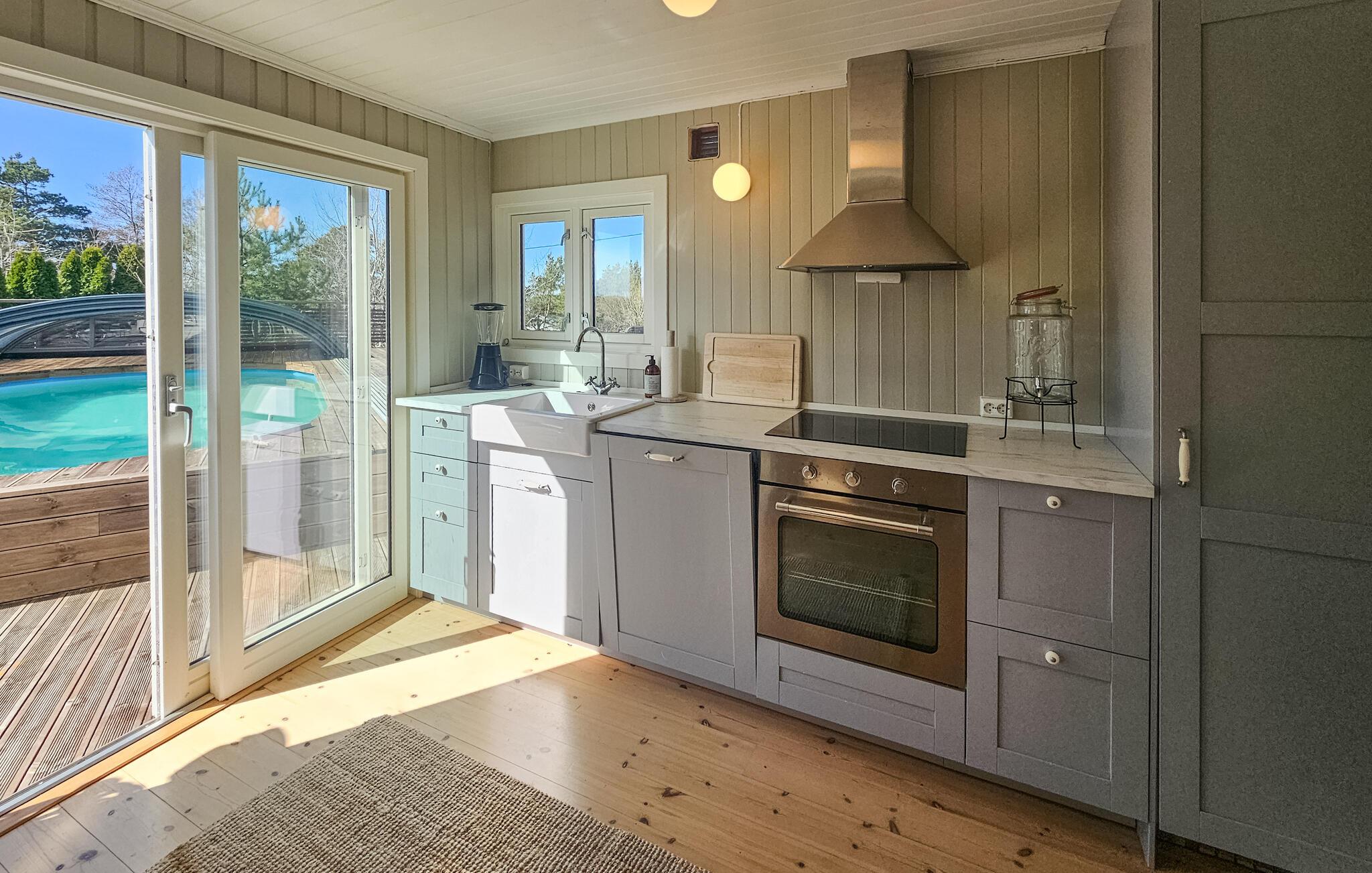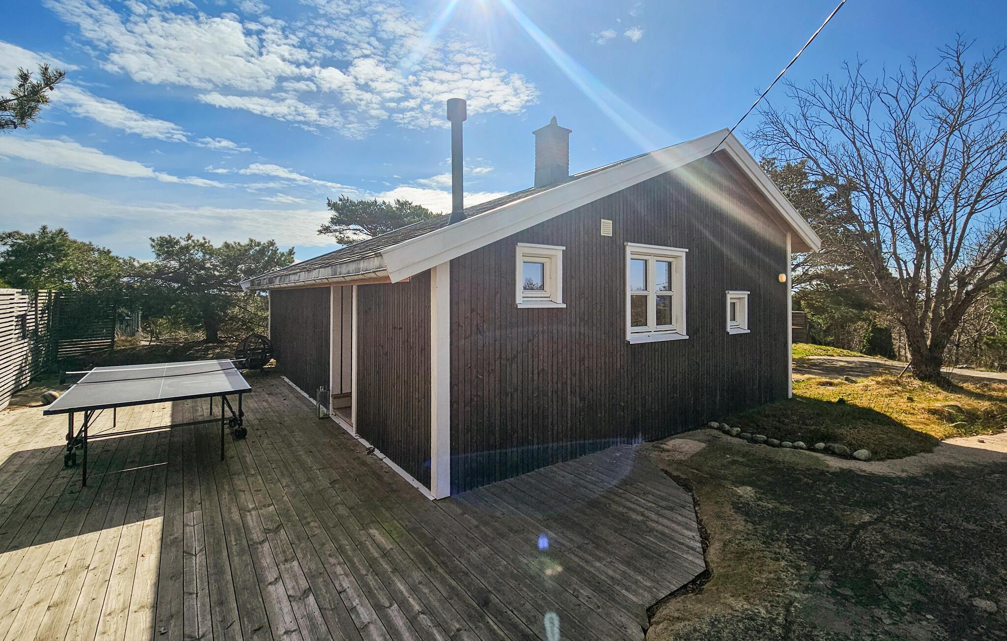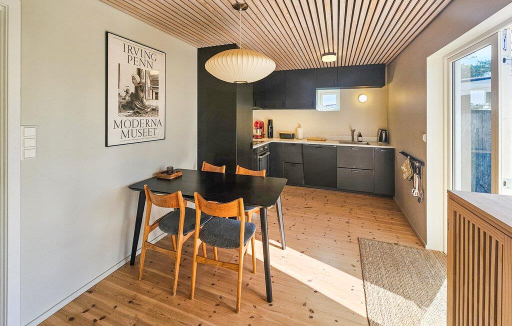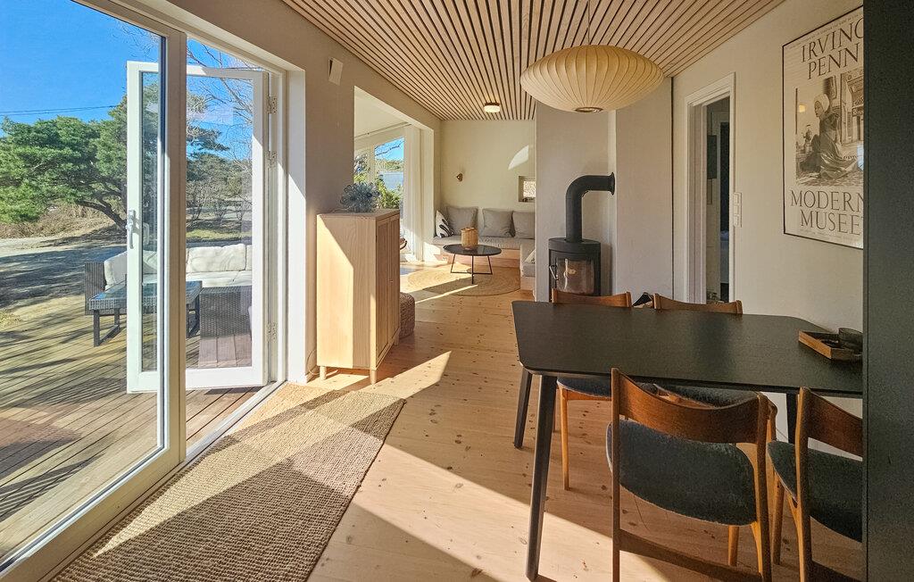 Dette hyggelige feriehus ligger nær kysten og byder jer velkommen med lyse interiører og stilfulde møbler, der vil få jer til at føle jer hjemme fra første øjeblik. Her finder I masser af plads til at nyde hyggelige madlavningsaftener, fælles måltider, både indendørs og udendørs, og hyggelige filmaftener, selv med en større gruppe.