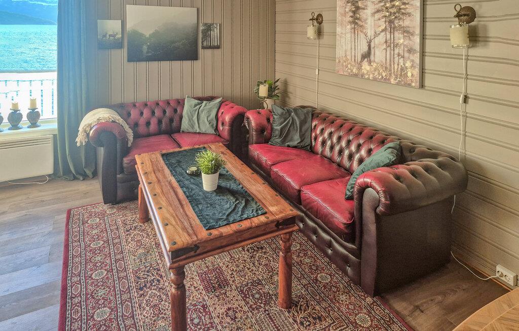 Lad jer fortrylle af roen i uberørt natur i jeres feriehus i Frosta, beliggende direkte ved fjorden. Begynd dagen med morgenmad ved spisebordet i den charmerende opholdsstue, mens I nyder den betagende udsigt over fjorden. De varme træmøbler og komfortable sofaer skaber en indbydende atmosfære, hvor I straks vil føle jer hjemme. Det veludstyrede køkken har alt, hvad I skal bruge for at tilberede jeres yndlingsmåltider. Tilbring omgængelige aftener med familien eller venner i det hyggelige opholdsområde eller planlæg næste dag med aktiviteter i området.