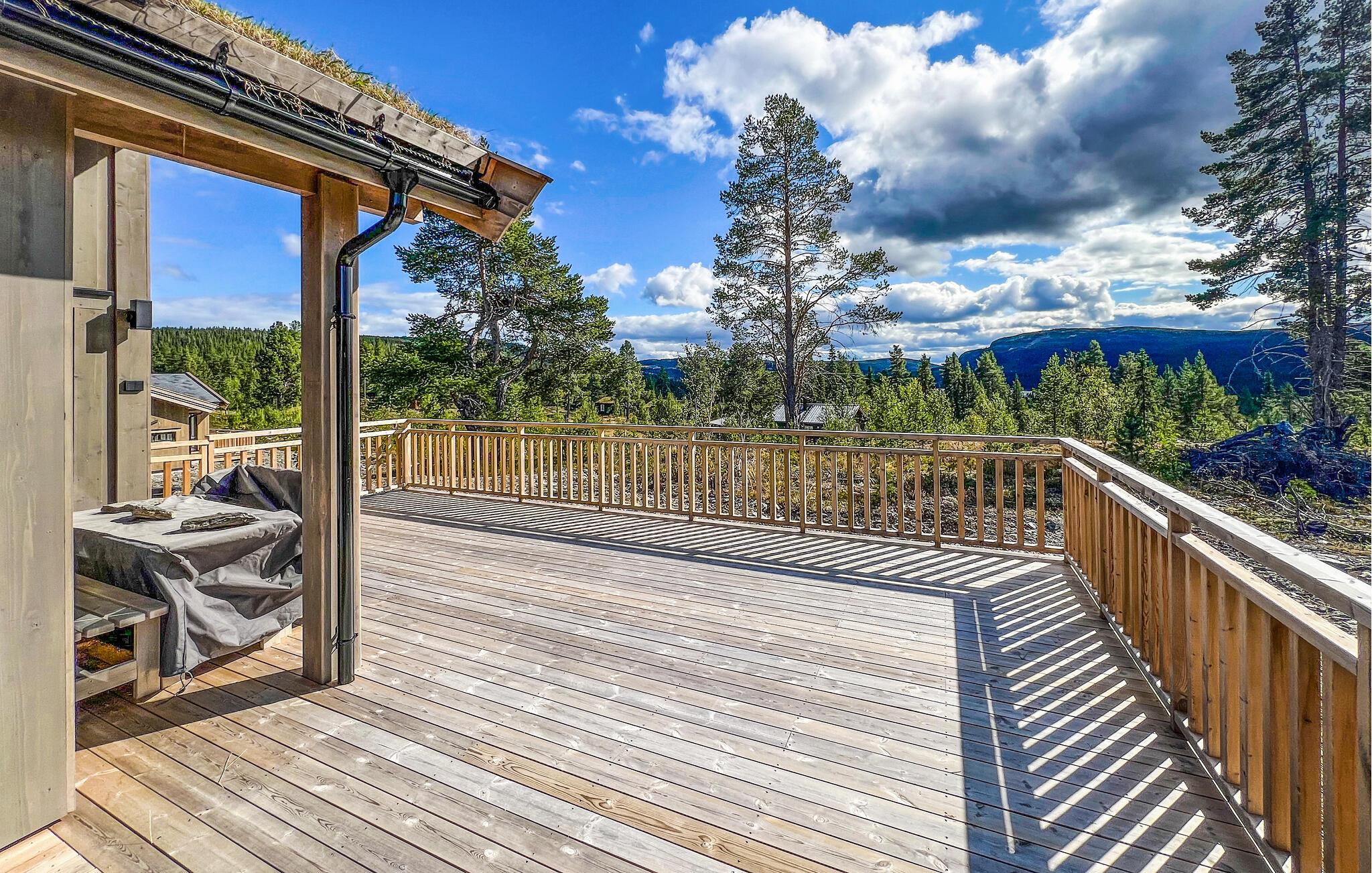 Beliggende i det fortryllende naturlandskab byder dette komfortable og luksuriøst møblerede feriehus jer velkommen. Smagfulde møbler, masser af træ og store vinduer skaber en virkelig afslappende atmosfære. Nyd harmoniske måltider med panoramaudsigt, slap af i saunaen efter en lang vandretur og stream en god film, mens I slapper af på den rummelige sofagruppe.