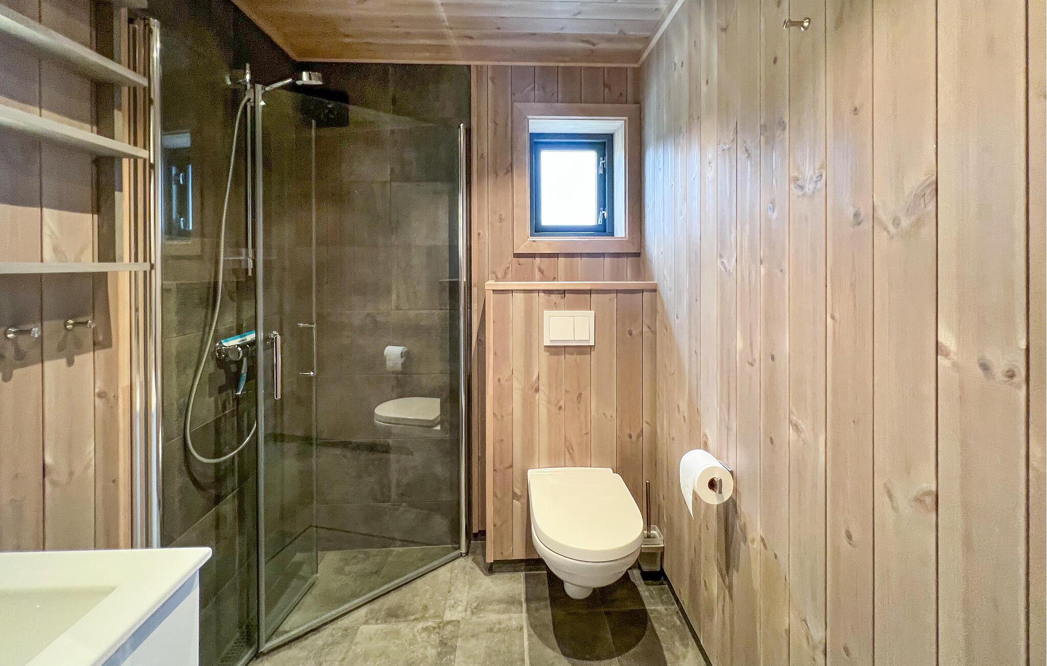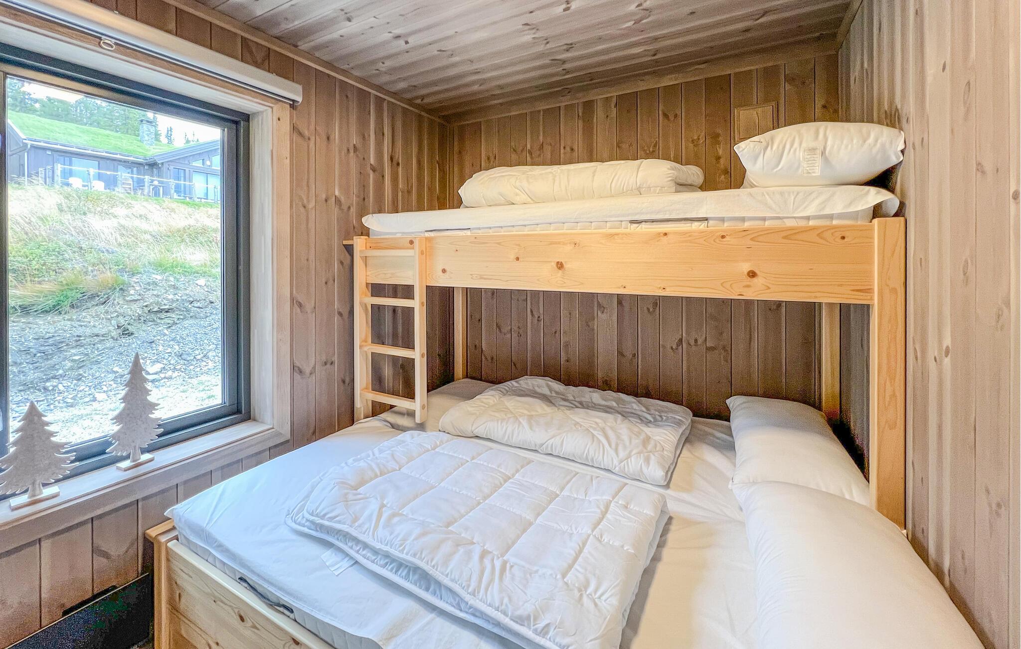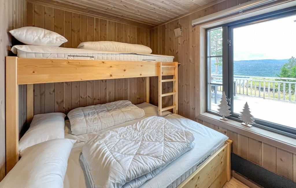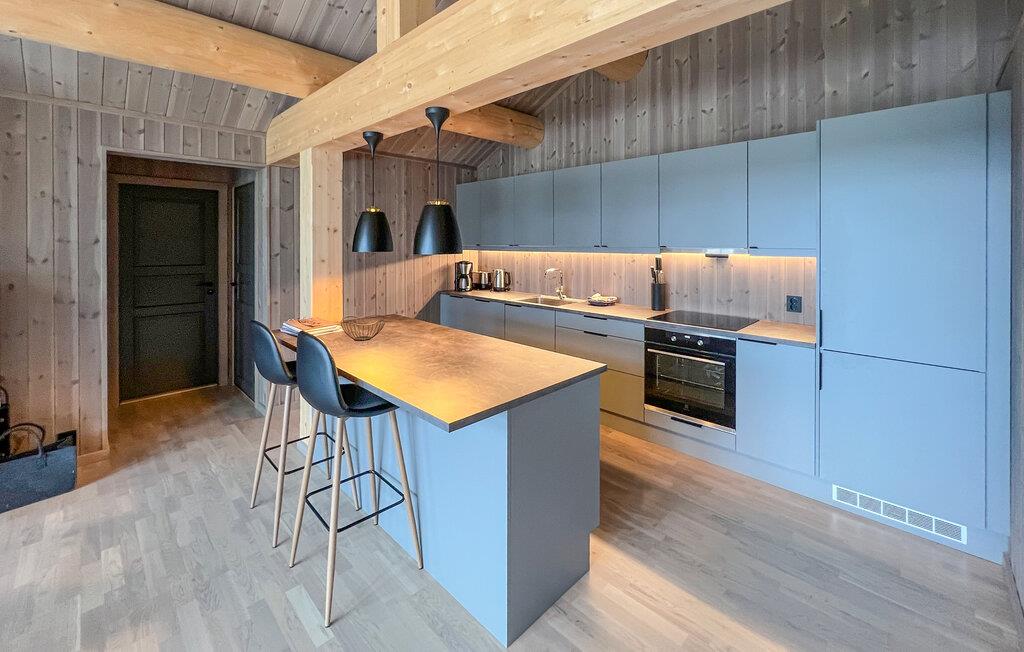 Tilbring en uforglemmelig ferie i dette stilfulde feriehus, der med sin beliggenhed midt i naturen kombinerer fred og komfort. Nyd den friske bjergluft og de mange muligheder i enhver sæson. Den store opholdsstue har højt til loftet og synlige træbjælker. Find jer godt til rette i de komfortable sofaer foran pejsen og nyd det vidtstrakte landskab gennem de store vinduer. Brug den tilstødende spisepladss moderne træbord til fælles måltider. Det åbne køkken har en kogeø med barstole, og efter aktive dage i naturen inviterer saunaen jer til at varme jer op og slappe af.