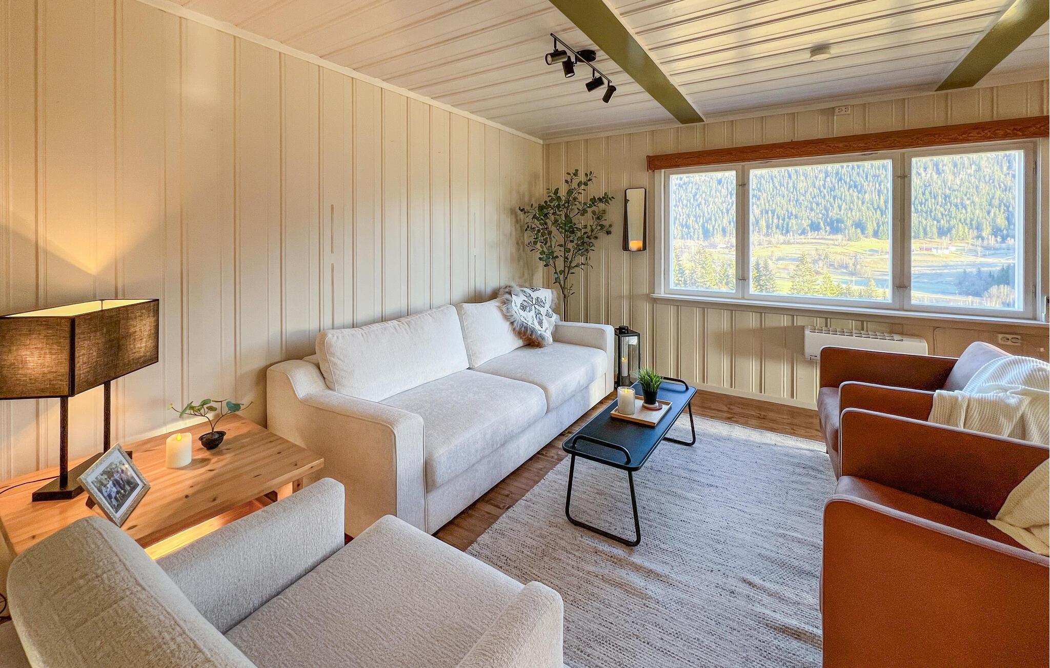 Dette charmerende og smagfuldt indrettede feriehus i Gausdal byder jer og jeres familie hjerteligt velkommen. Lyse rum, varme træelementer og den knitrende brændeovn skaber en behagelig atmosfære, hvor I straks vil føle jer hjemme. Tilbring hyggelige aftener i det rummelige køkken, tilbered lækre måltider sammen, og nyd samværet i den hyggelige stue.