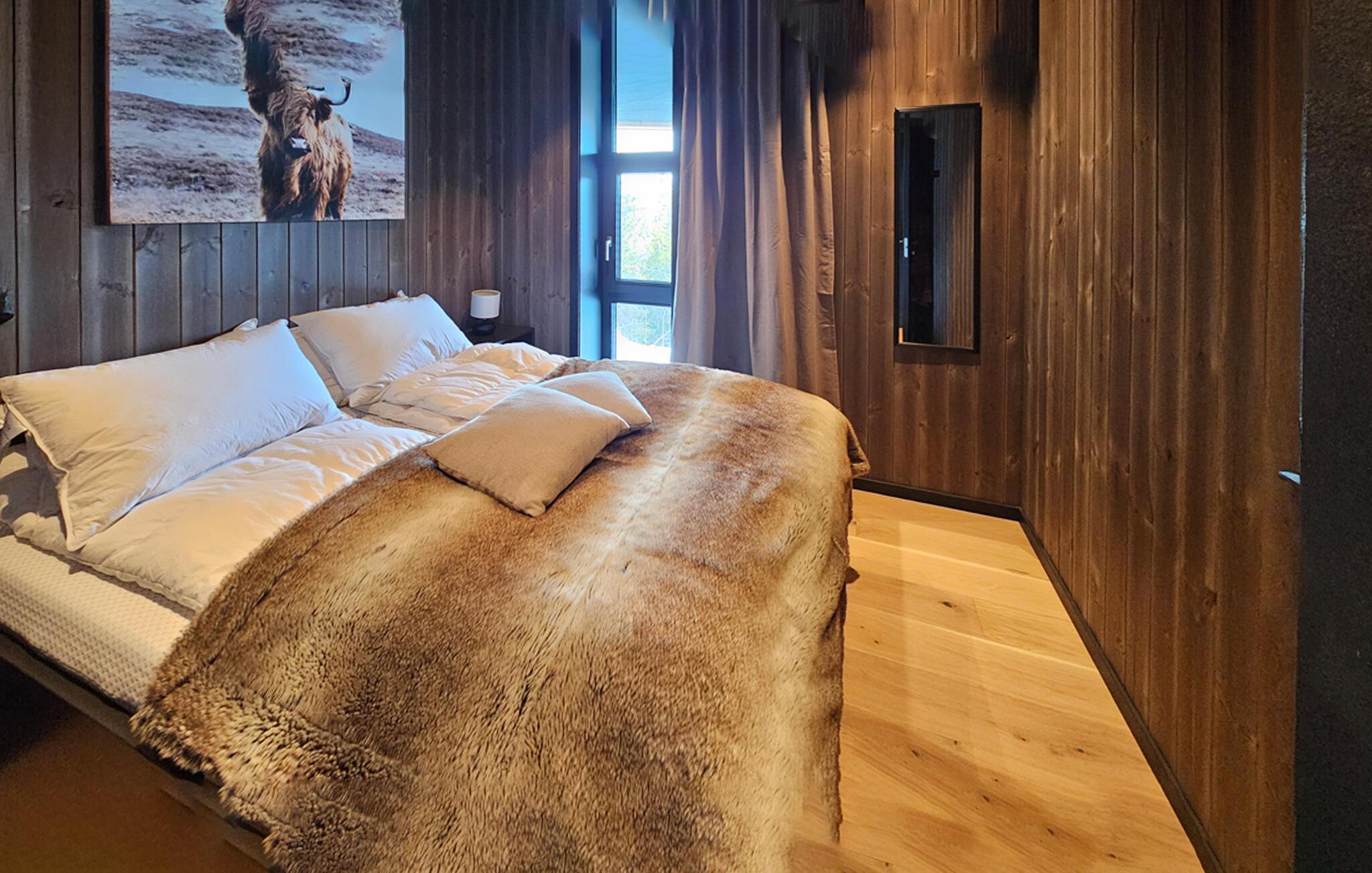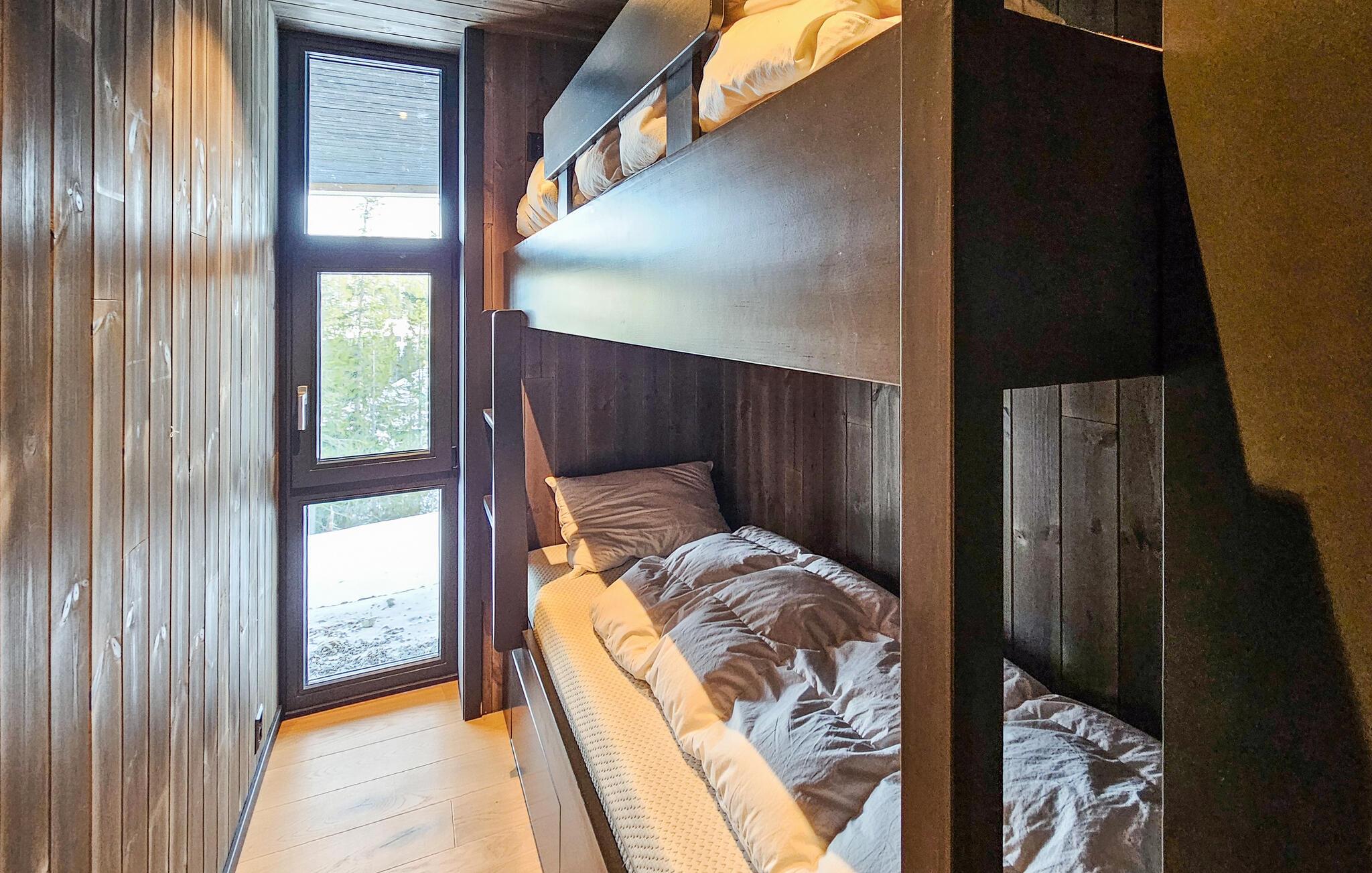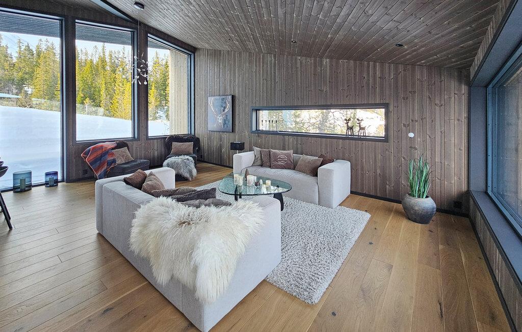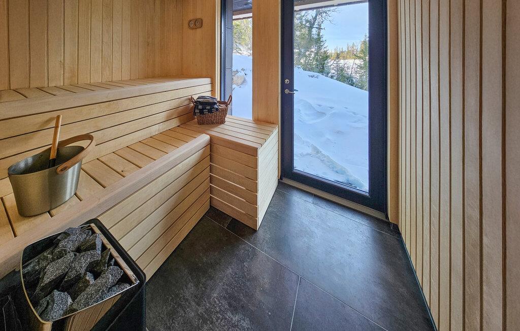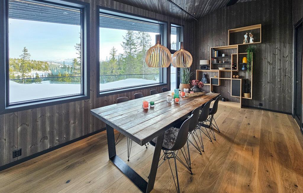 Midt i et eventyrligt landskab venter dette rummelige og komfortabelt indrettede feriehus og inviterer til en uforglemmelig pause fra hverdagen. Tænd op i pejsen, og lad jer inspirere af den idylliske udsigt, mens I tilbereder mad i det moderne køkken. Nyd afslappende øjeblikke i saunaen, og se frem til stemningsfulde timer i de hyggelige opholdsrum, hvor I kan nyde gode samtaler over et glas vin eller afholde hyggelige filmaftener.