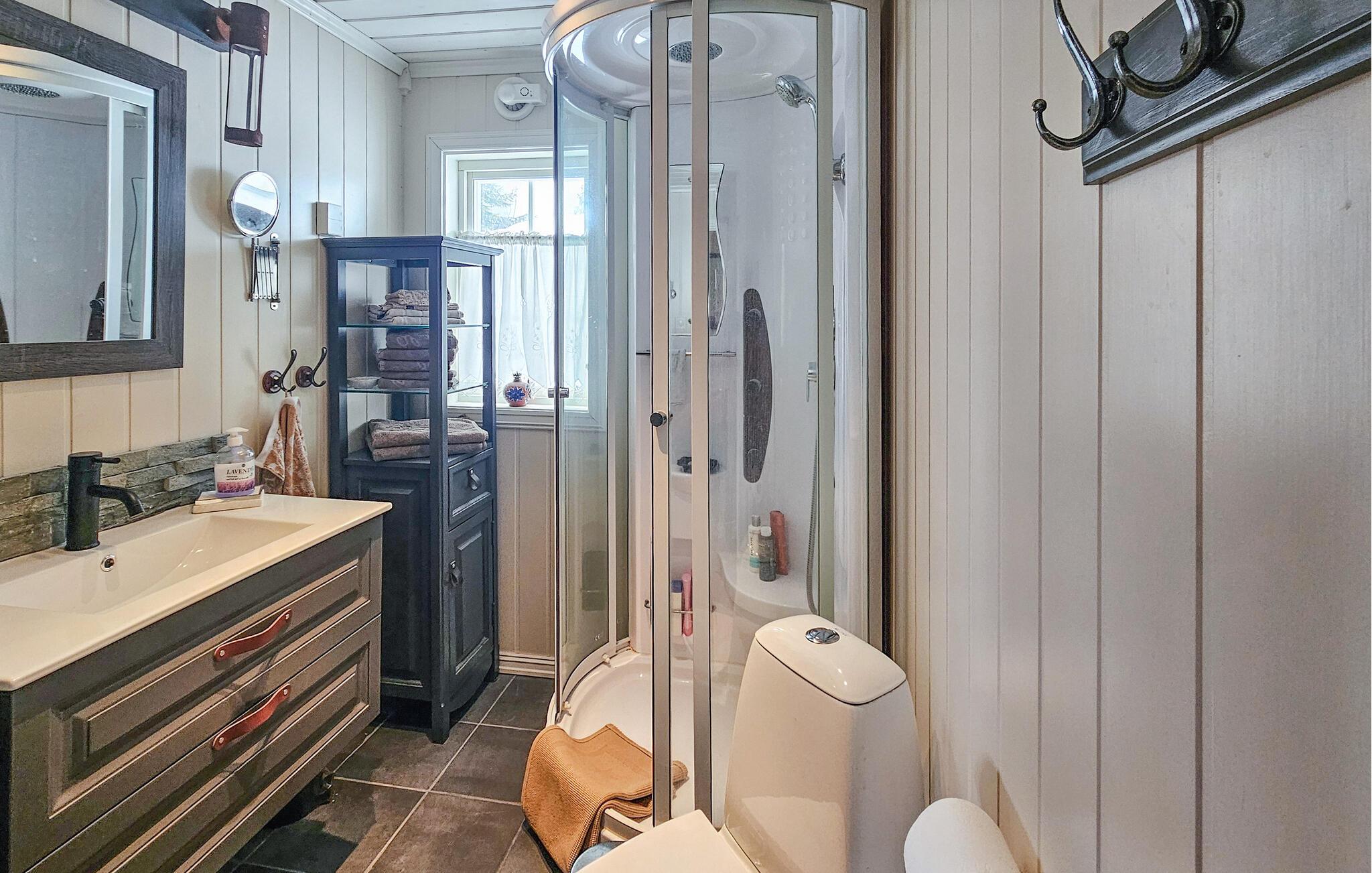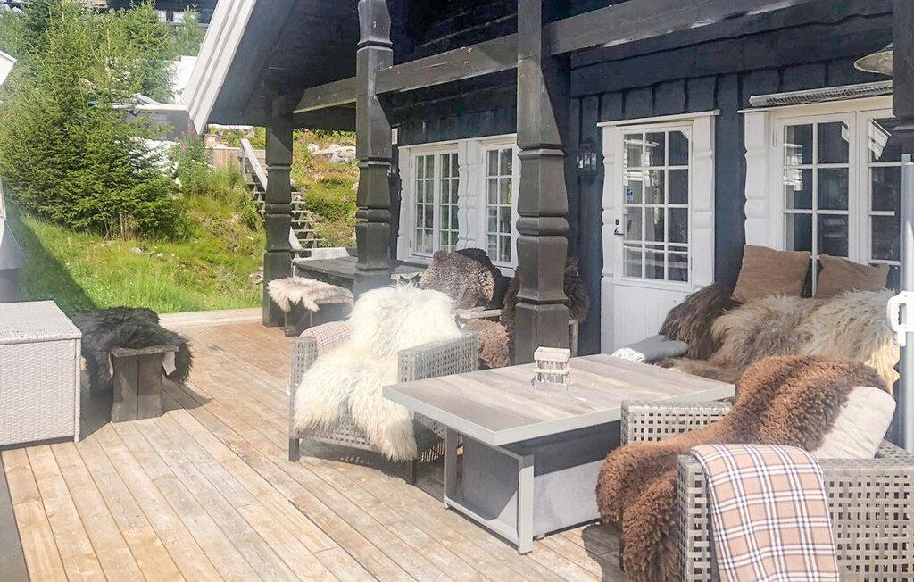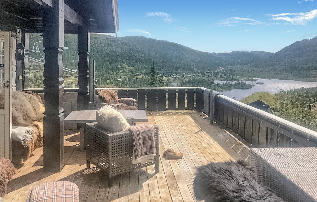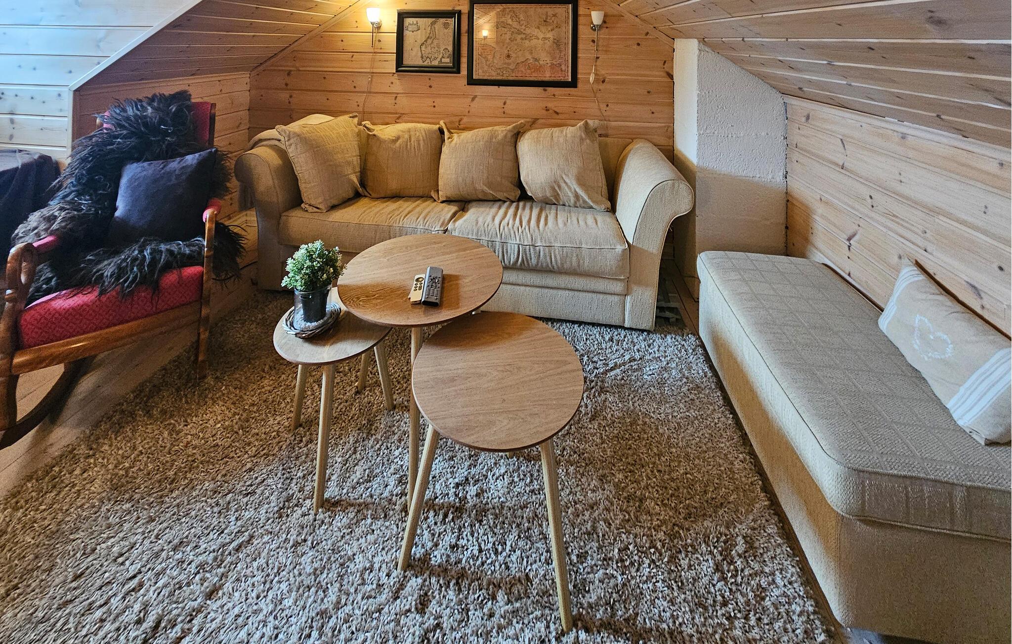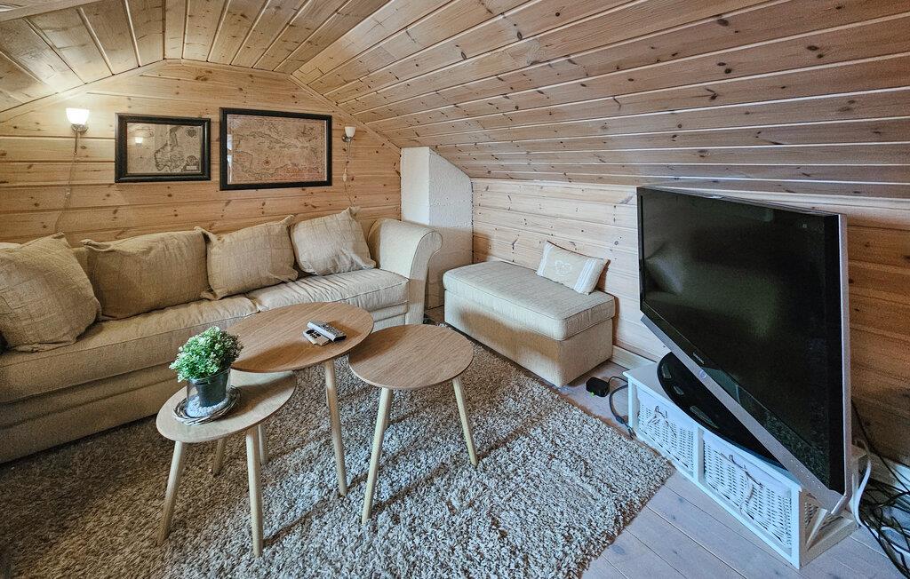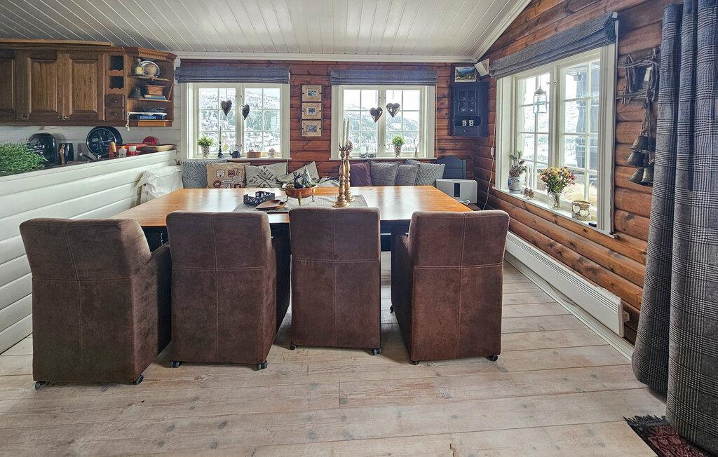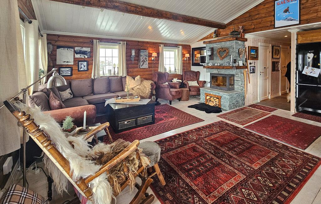 Dette skønne feriehus lægger op til en afslappende pause midt i den norske natur. Glæd jer til et interiør fuld af charme og traditionel atmosfære. Find jer godt til rette i den rummelige stue, udstyret med komfortable møbler, træbjælker i loftet og en brændeovn. Tilbring aftener sammen ved spisebordet, nyd hyggelige filmaftener i den separate tv-stue eller slap af med gode samtaler i de rummelige sofaer.