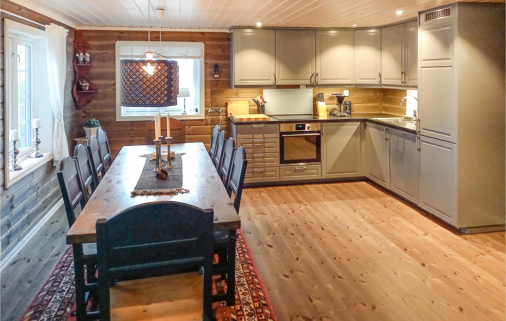 Tilbring en uforglemmelig ferie i dette feriehus med en vidunderlig udsigt over bjergene fra terrassen. Det komfortable hus byder dig velkommen i en vidunderlig beliggenhed til udendørs aktiviteter. Nyd en afslappende pause med dine nærmeste i de attraktive lokaler, som får et varmt udtryk af træpanelerne og er indrettet i nyrustik stil. Glæd jer til fælles måltider eller underholdende spilleaftener i en hjemlig atmosfære, efter en begivenhedsrig dag kan I slappe af i sofaen med en smuk udsigt udefra og hyggesnakke længe ved den knitrende pejs. Du kan slappe af udenfor på terrassen, blive fortryllet af det fantastiske panorama og nyde de lange sommeraftener med lækkerier fra grillen. Du holder din ferie i et skønt vandreområde, udforsker det fascinerende bjerglandskab fra sommerhuset. Svømning og fiskemuligheder er inden for nem gåafstand. Du vil have gode minder fra din ferie i dette feriehus i lang tid fremover.