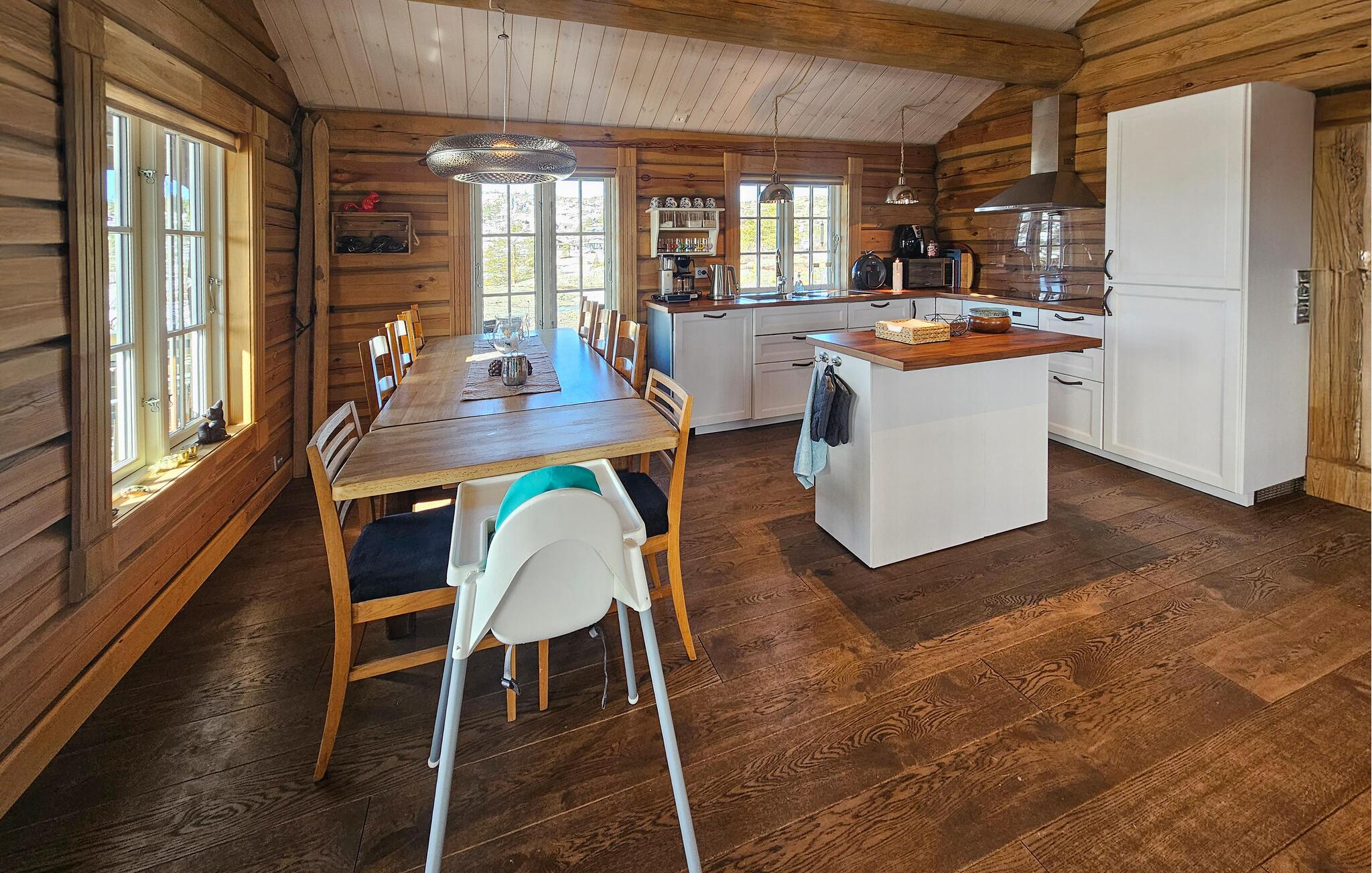 Glæd jer til en afslappende pause fra hverdagen i dette charmerende feriehus midt i smukke omgivelser. Tryl lækre retter frem i det moderne køkken, og nyd hyggelige måltider ved det lange spisebord. Tænd op i brændeovnen, og slap af i de bløde siddepladser i den indbydende stue, måske med en spilleaften eller en stille læsestund.