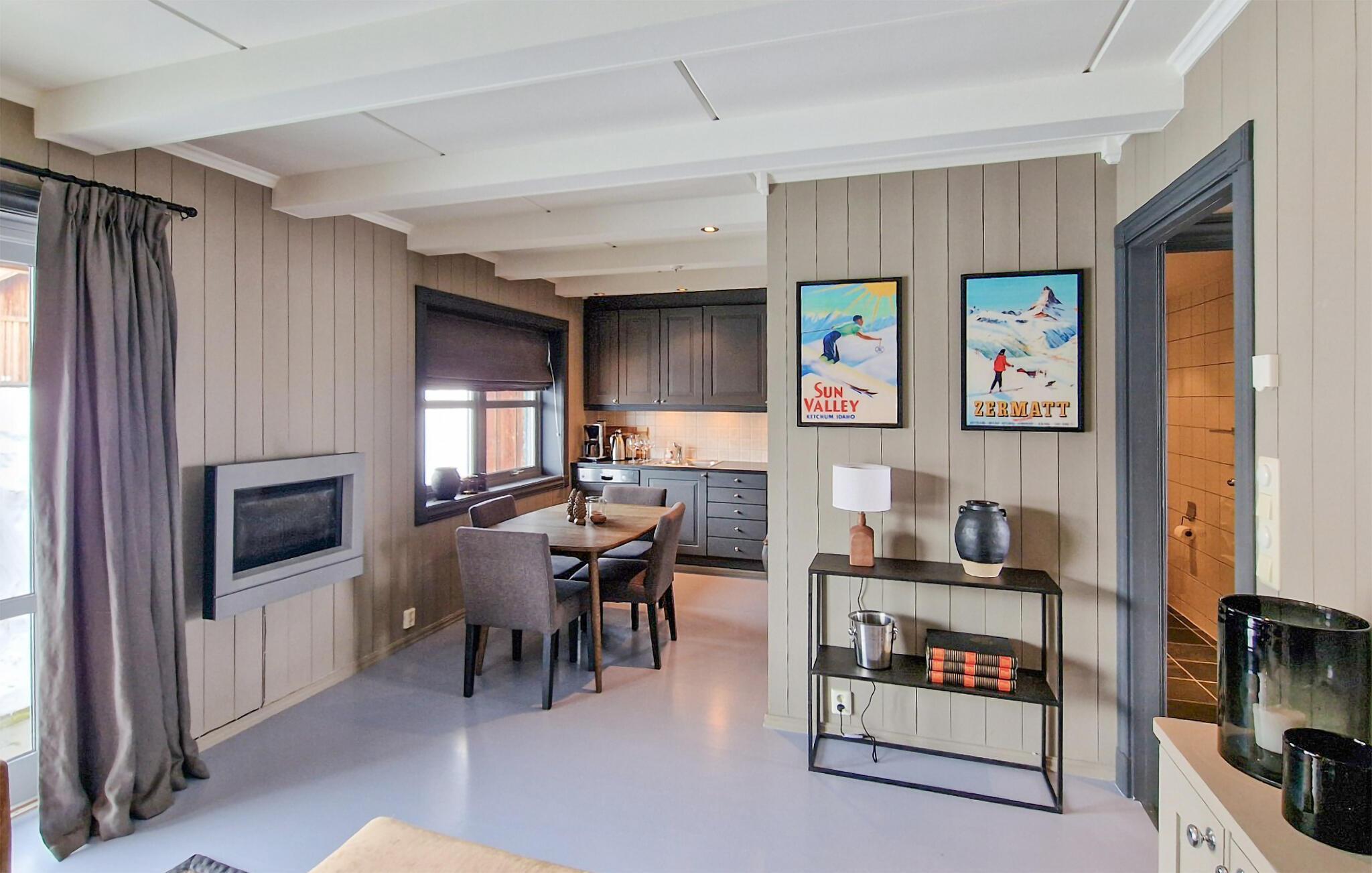 Hvis I er på udkig efter en ferie med store naturoplevelser, får I en fremragende base i denne lejlighed, der ligger smukt omgivet af det spektakulære bjerglandskab. Indvendigt fremtræder boligen flot og komfortabelt i behagelige farveskalaer, der får skuldrene til at sænke sig med det samme, I ankommer. Nyd godt af de moderne bekvemmeligheder og tilbered familiens livretter i det veludstyrede køkken, inden I runder dagen af i sofaen med lidt gode snacks og en film på tv'et.