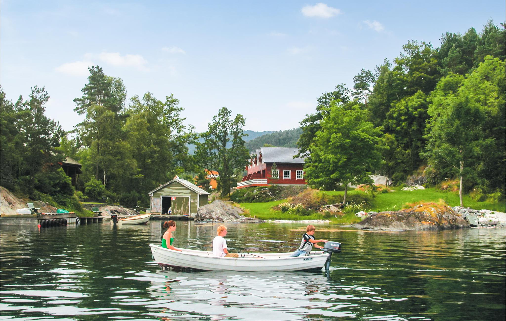 Fire flotte huse (N19601-04) beliggende i et naturskønt strandområde ved Hardangerfjorden. Det er rækkehuse, men de er fuldstændigt lydisolerede, og hvert hus har en stor, godt afskærmet terrasse. Herfra har I panoramaudsigt over fjorden og fjeldene med Folgefonna i baggrunden. Her er de perfekte rammer til en varieret og aktiv ferie i smuk natur. Fjorden er fiskerig, og I kan leje komplet fiskegrej til at fiske i fjorden. Gæsterne i disse feriehuse kan benytte sig af tilbuddene i det store område: Der er flere sandstrande og bådehavne, vandrestier, naturgolf, boldbaner og et naturreservat med øgler. Ydermere finder I sauna, billard- og bordtennisbord i et fælles aktivitetsrum. Stedet er et godt udgangspunkt for udflugter til f.eks. Bergen.