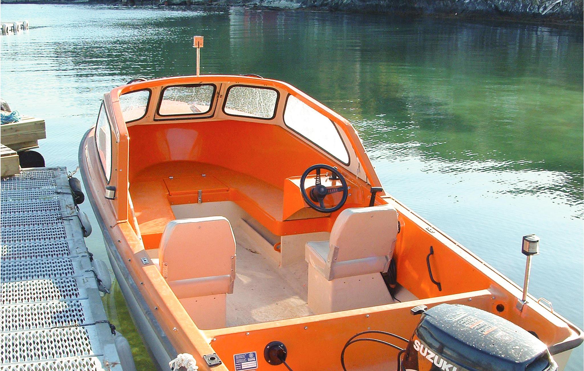 Båd. Motor kan lejes4 hk, 14 fod