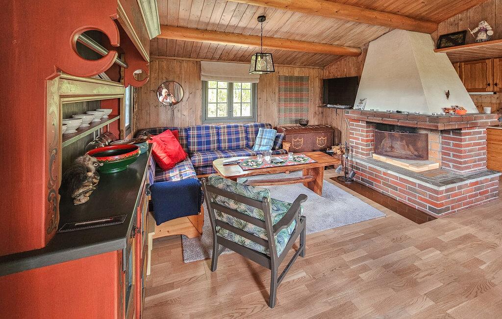 Undslip den hektiske hverdag i dette hyggelige hus midt i naturen. Trævæggende og bjælkerne i lofterne giver huset sin charme, og helt automatisk kommer man ned i gear og feriestemning. Den smukke pejs giver hyggelig varme på kølige aftener, så I kan samle jer i stuen til spilleaftener og hyggesnak i sofahjørnet.