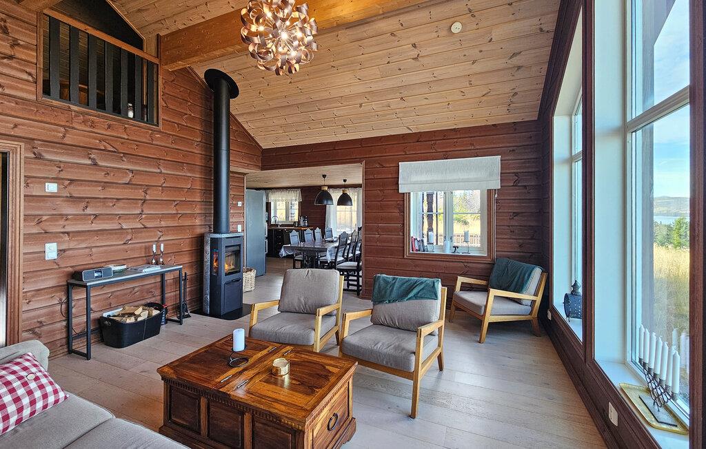 Oplev en skøn ferie i dette rummelige og smagfulde familieferiehus med udsigt. Dette feriehus på Golsfjellet er en sand perle for din store familie. Med masser af plads og varme, indbydende møbler, byder den på alt hvad I behøver for en afslappende ferie. Smid jer ned i sofaen og nyd den betagende udsigt over fjorden, mens I mærker den hyggelige varme fra brændeovnen. Saunaen giver yderligere afslapning, mens spændende timer venter jer ved en bordfodboldturnering - ideel til selskabelige aftener med hele familien. Pisk lækre måltider sammen i det store køkken og nyd dem på den store træterrasse, hvor I fuldt ud kan nyde det imponerende panorama. Golsfjellet-området byder på en række aktiviteter på alle tider af året. Om vinteren venter perfekt præparerede skiløjper og alpine faciliteter på jer, mens sommeren byder på ideelle forhold til vandreture, cykling og svømning. Fiskeentusiaster vil også få noget for pengene. Oplev den maleriske natur på lange gåture eller udfordr jer selv på udfordrende vandreture. Regionen er et paradis for udendørsfans og vil gøre din ferie uforglemmelig midt i det imponerende bjerglandskab.