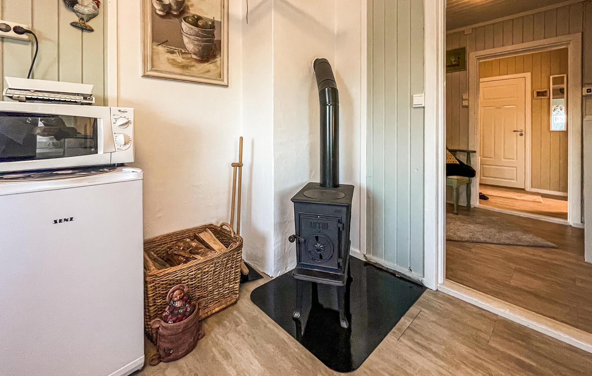 Start jeres dag med morgenmad i det hyggelige køkken, som er fuldt udstyret med alt, hvad I behøver. Gør det komfortabelt i den nostalgisk indrettede stue og mærk varmen fra brændeovnen. Benyt verandaen til afslappende stunder udendørs og nyd den grønne udsigt. Saml jer ved grillpladsen til hyggelige aftener.