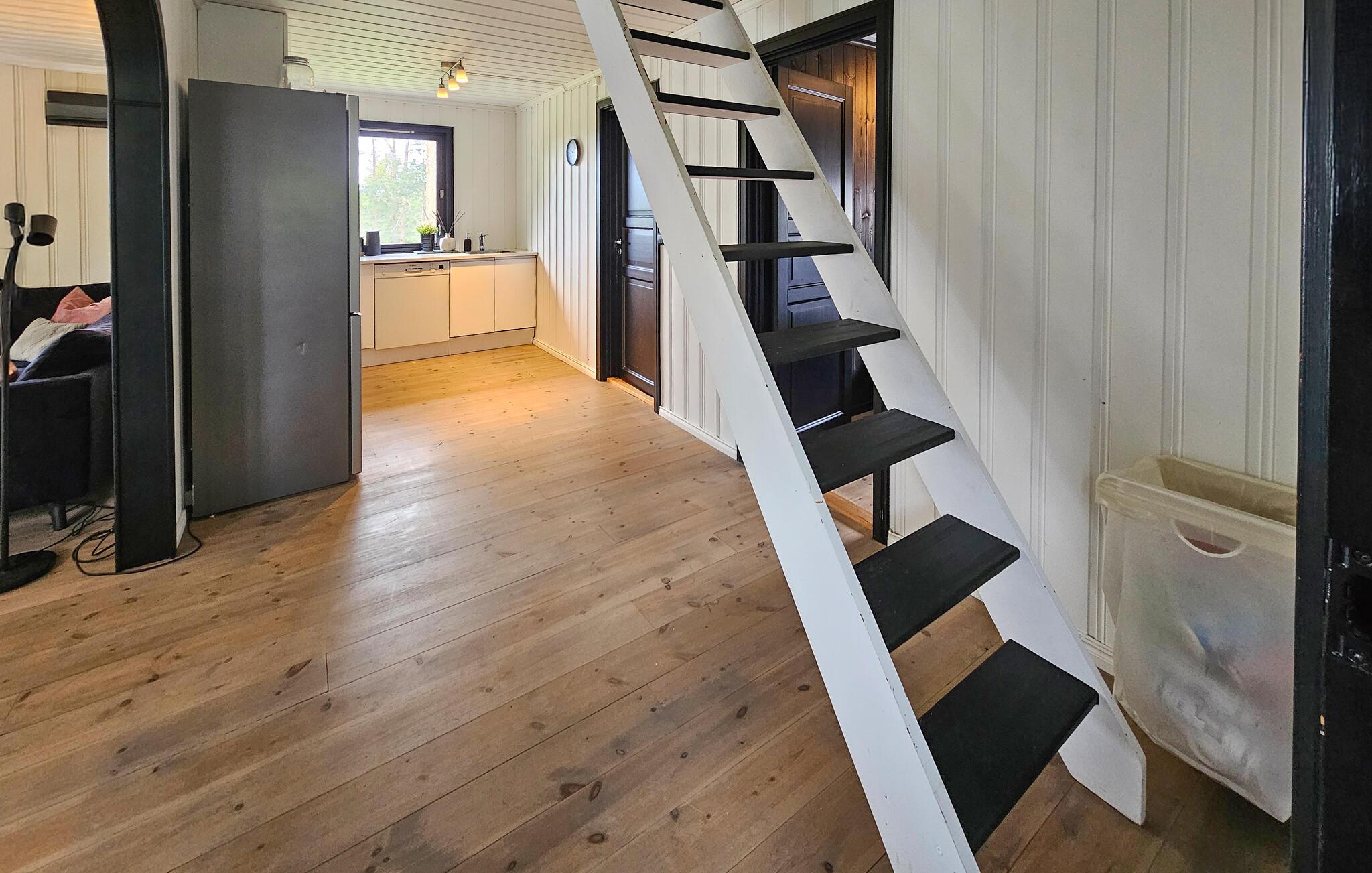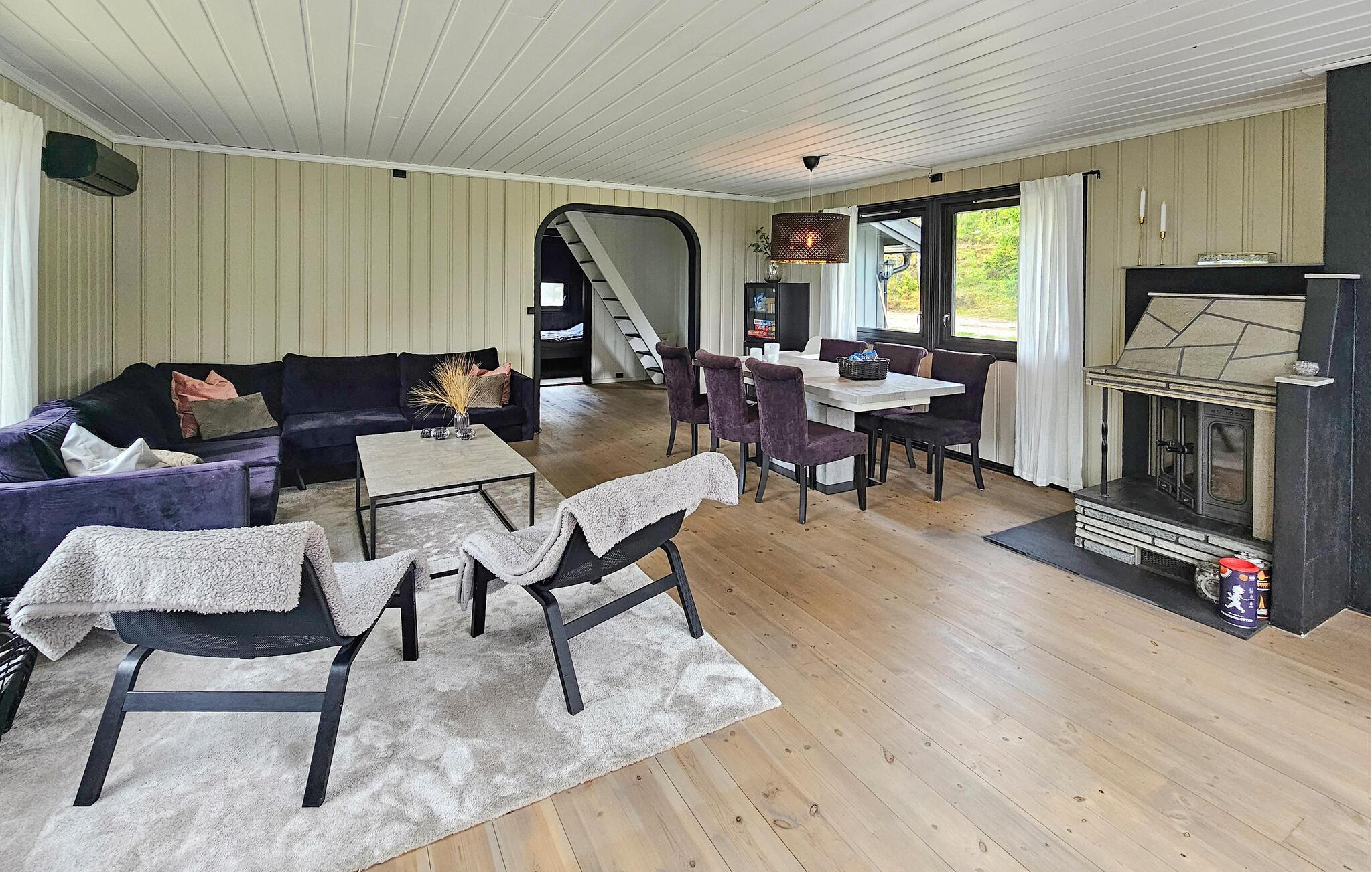 I dette rummelige feriehus nær fjorden kan I nyde den hyggelige boligstemning, selv med en større familie, mens I udforsker de fortryllende naturomgivelser på længere udflugter. Hold hyggelige madlavningsaftener og nyd tiden sammen med muntre måltider ved det indbydende spisebord. Slap af om aftenen med en film i sofaen eller nyd en spilleaften, mens pejsen bader rummet i varmt lys.
