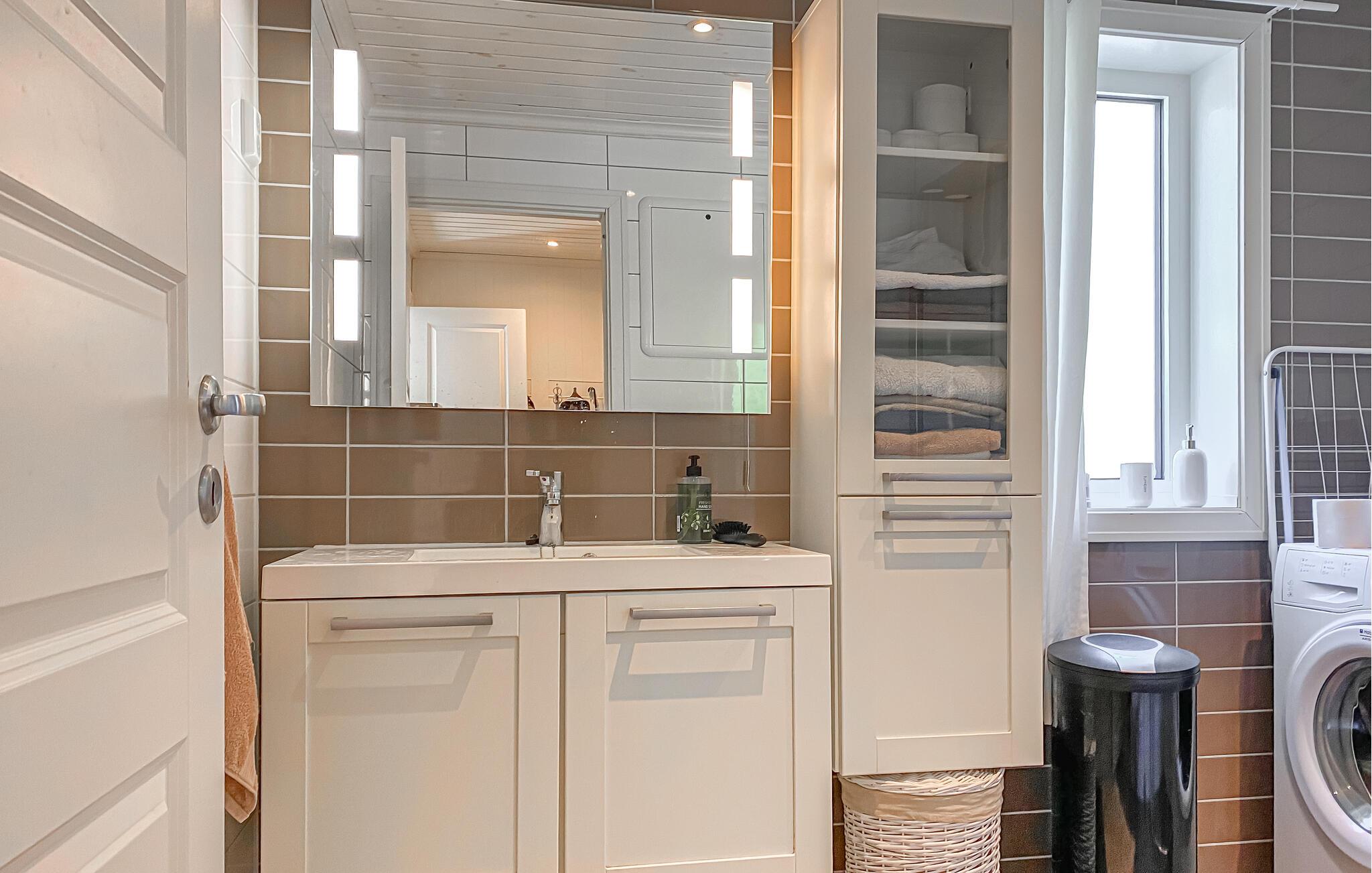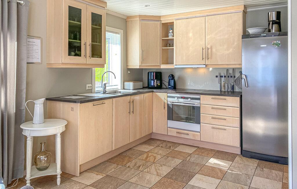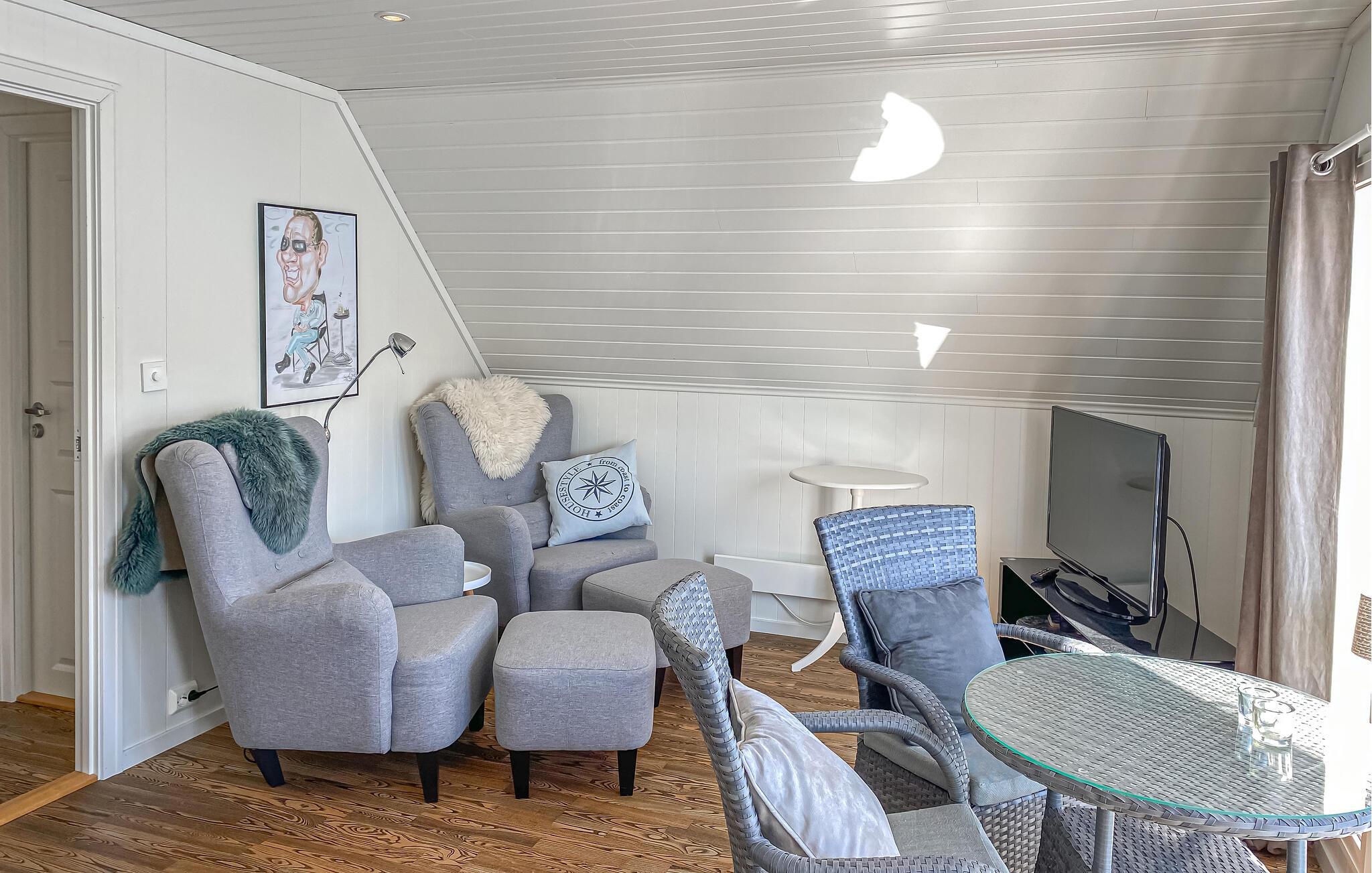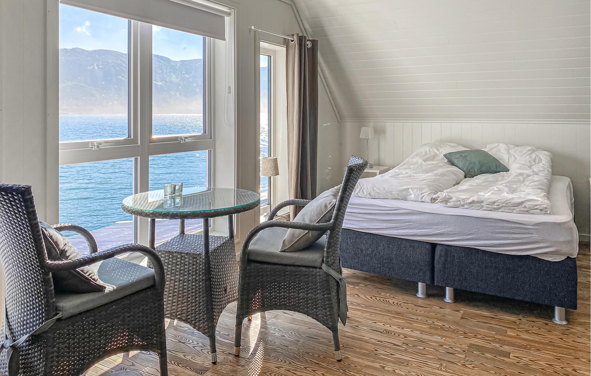 Glæd jer til en ferie i en smuk beliggenhed lige ved fjorden. Dette feriehus tilbyder ideelle forhold for lystfiskere, friluftsmennesker og alle, der nyder at være tæt på vandet. Den behageligt designede opholdsstue kan prale af et komfortabelt siddeområde, et stort tv og direkte adgang til terrassen. Nyd udsigten over vandet gennem de store vinduer og bliv budt velkommen af ??den lyse, velholdte atmosfære.