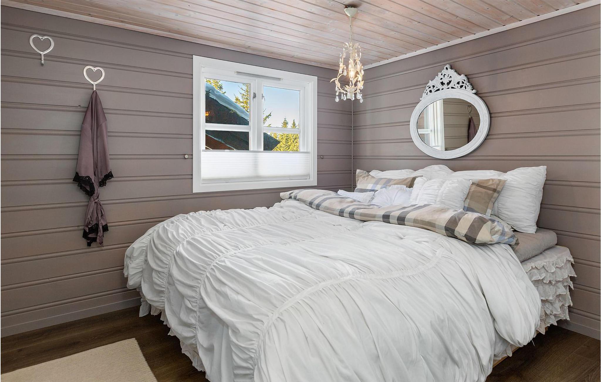 Det er nemt at finde sig til rette i denne hytte. Den er nydeligt indrettet, byder på mange hyggekroge og er usædvanligt lys takket være de ekstra vinduer i gavlen. Slap af i den brede sofa ved brændeovnen. Om aftenen kan I restituere i saunaen efter en aktiv dag med vandreture, imponerende udsigter, badning i bjergsøer eller langrend om vinteren. I dejligt vejr er terrassen et fantastisk sted at nyde feriens måltider og udsigten over landskabet.