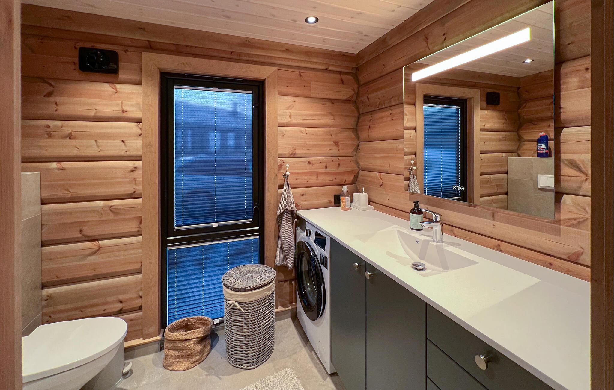 Velkommen til dette hyggelige feriehus, hvor masser af træ, smagfuld indretning og stilfuld belysning sørger for en masse hygge. Pisk træskeen op i det fuldt udstyrede køkken og saml jer om det lange spisebord med panoramaudsigt til lækre måltider. Tænd pejsen og glæd jer til hyggelige aftener i sofaen med en spændende film eller et glas vin.