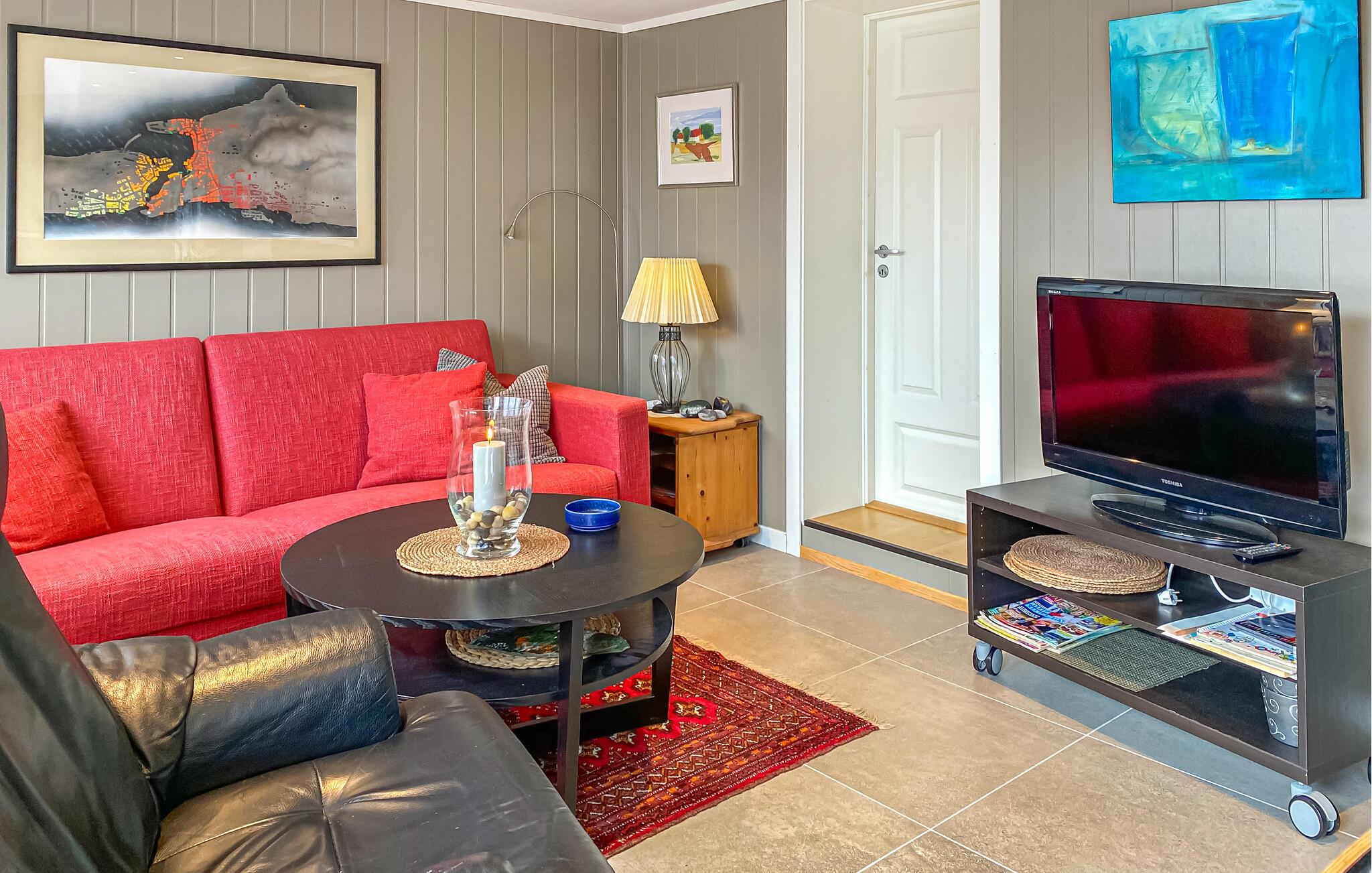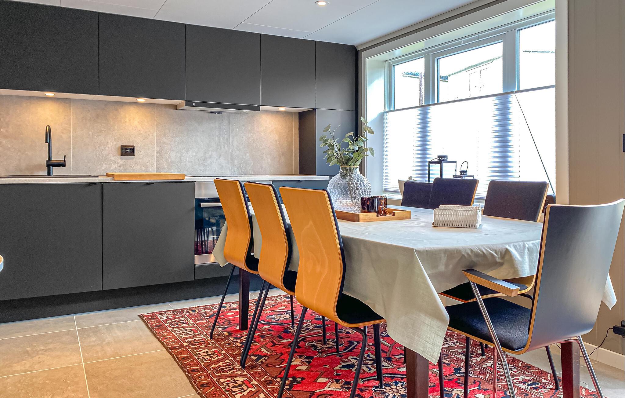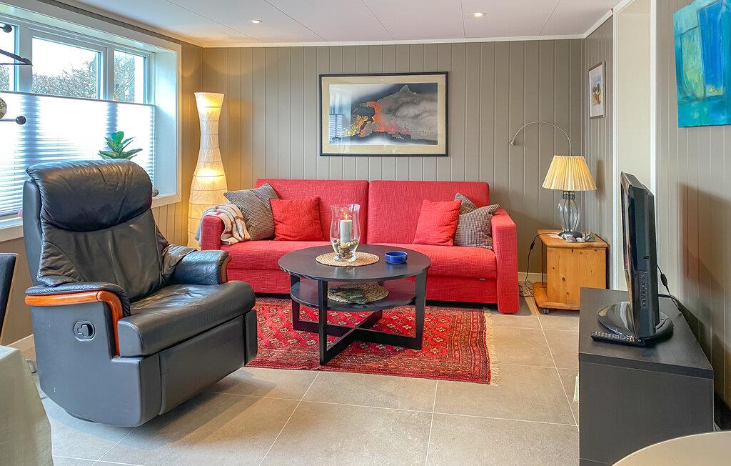 Denne komfortable ferieindkvartering er noget særligt med sin rolige beliggenhed, hyggelige indretning og umiddelbare nærhed til naturen. Læn jer tilbage i den hyggelige opholdsstue. Sæt jer ned på de bløde møbler og oplev den kærlige og stilfulde indretning. Tænd for fjernsynet, eller nyd blot den afslappede atmosfære. Det åbne, moderne køkken tilbyder masser af plads til fælles måltider. begynd dagene ved det indbydende spisebord med udsigt over de grønne omgivelser.