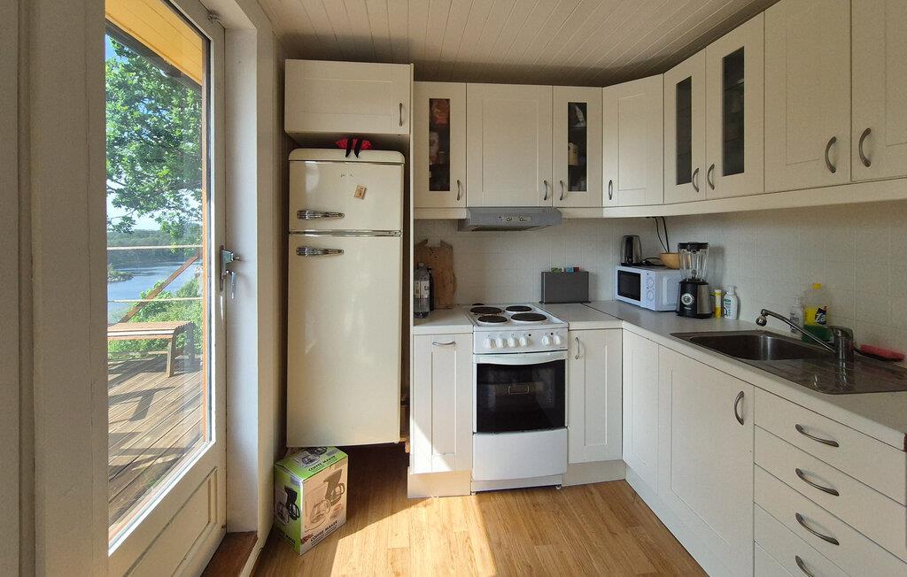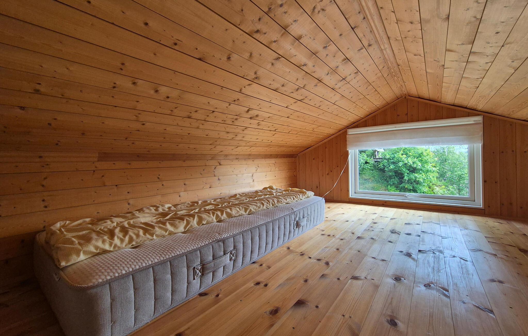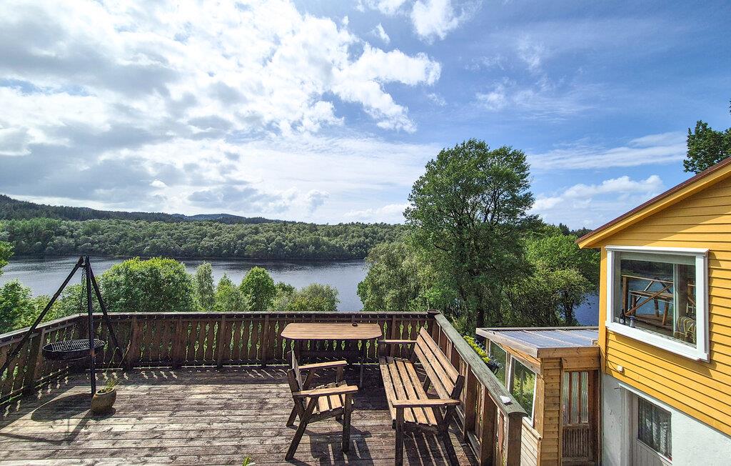 Takket være husets afsides beliggenhed ved Kallandsvatnet kan I til fulde nyde naturens fred og skønhed. Ejendommen har flere terrasser og udendørsområder, der er optimale til at beundre den imponerende udsigt over vandet. Her kan I slappe af i fred og ro eller mærke magien i de fredelige omgivelser, mens I sidder med en god bog. Husets lyse opholdsstue lægger op til gode hyggestunder. Find jer godt til rette i sofaen og nyd udsigten gennem de store vinduespartier, som giver jer følelsen af ??at være lige midt i naturen. Nyd dagens måltider på terrassen, akkompagneret af fuglesang og de blide skvulp fra vandet.