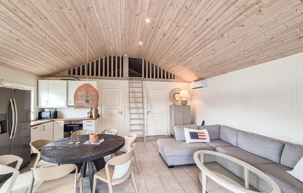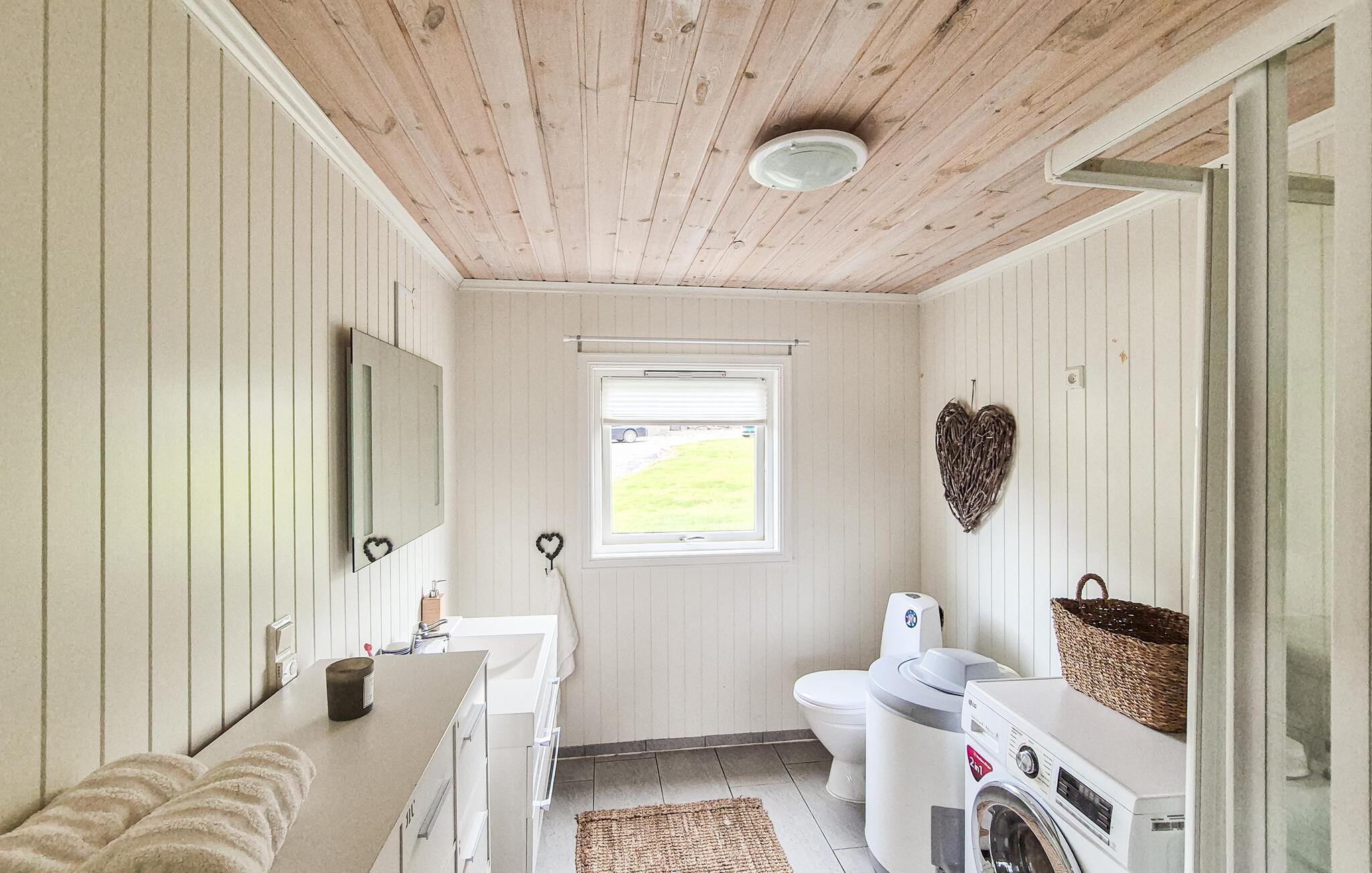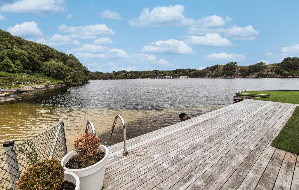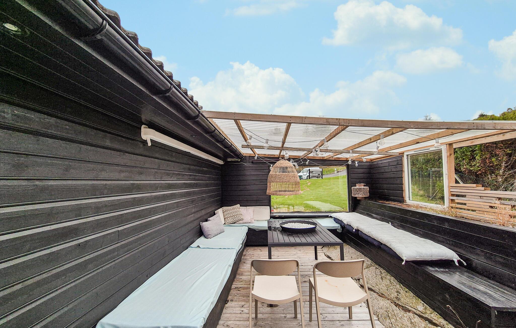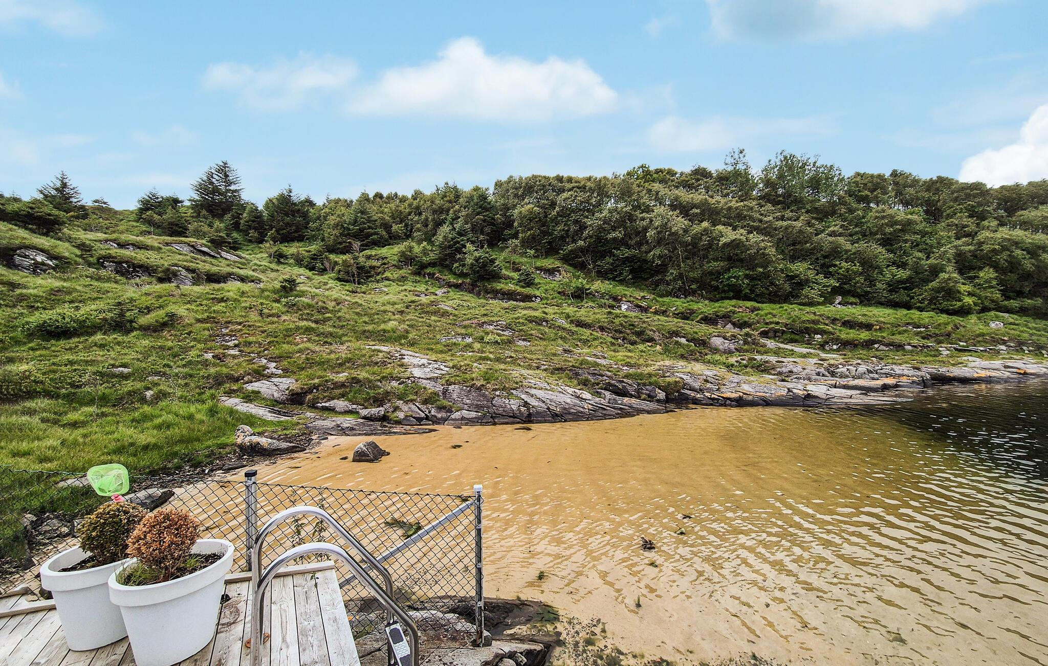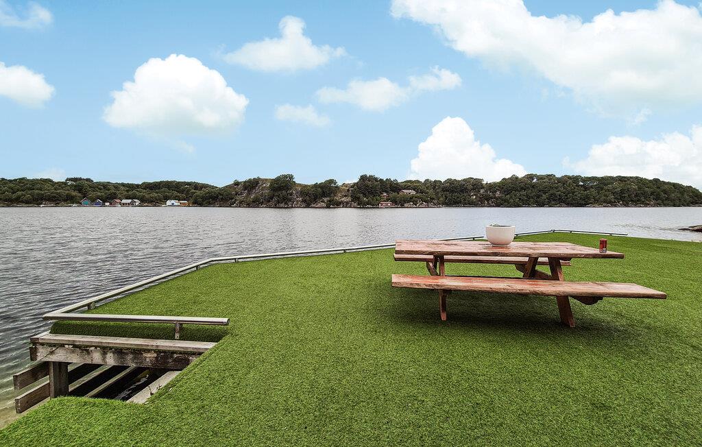 Læg hverdagens hektiske tempo bag jer og nyd freden og skønheden ved den norske kyst. Feriehusets smukke beliggenhed direkte ved vandet skaber en idyllisk atmosfære, hvor I kan slappe af. Nyd den friske havluft og den klare sol her hele dagen lang. Hytten har desuden et hyggeligt overdækket udeareal, som er ideelt til sociale aftener eller stille læsetimer. Det store fælles udendørsareal med indhegnet græsplæne byder også på masser af plads til at lege og slappe af.