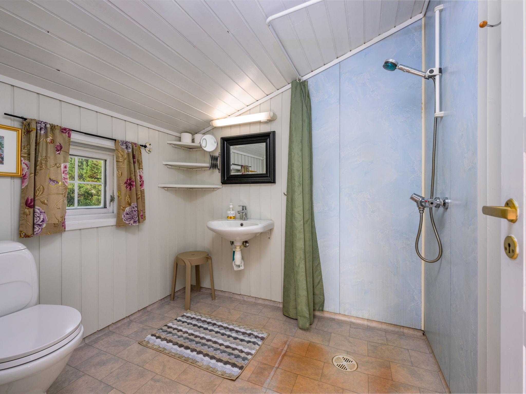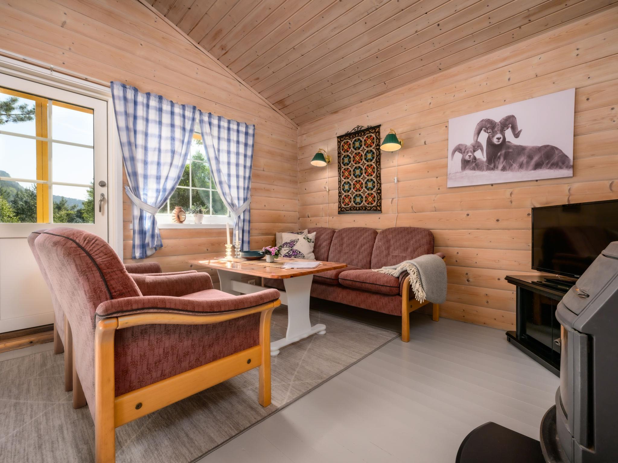"Synnøve", 3-room house 50 m2. Practical furnishings: living/dining room with Scandinavian wood stove, dining table, satellite TV and international TV channels. Exit to the terrace. 1 room with 1 double bed (150 cm, length 200 cm). 1 room with 1 bed (90 cm, length 200 cm), 1 x 2 bunk beds (75 cm, length 200 cm). Open kitchen (4 hot plates, oven, dishwasher, toaster, kettle, microwave, freezer, electric coffee machine). Shower/WC. Electric heating. Terrace partly roofed. Terrace furniture, barbecue, box-room. Facilities: washing machine, baby cot. Internet (WiFi, free). Please note: maximum 2 pets/ dogs allowed. Smoke alarm, fire extinguisher. Freezer approx. 105 l. 924531169