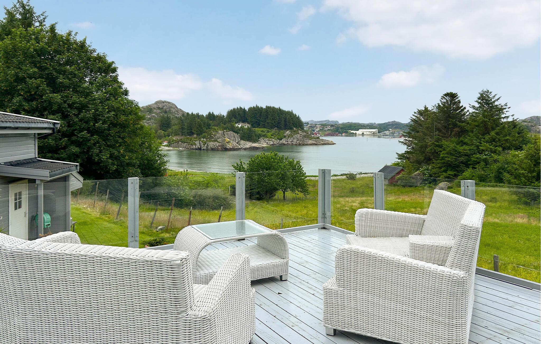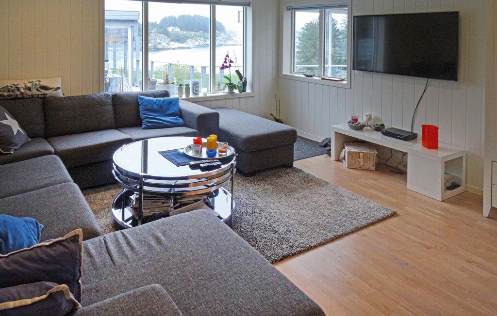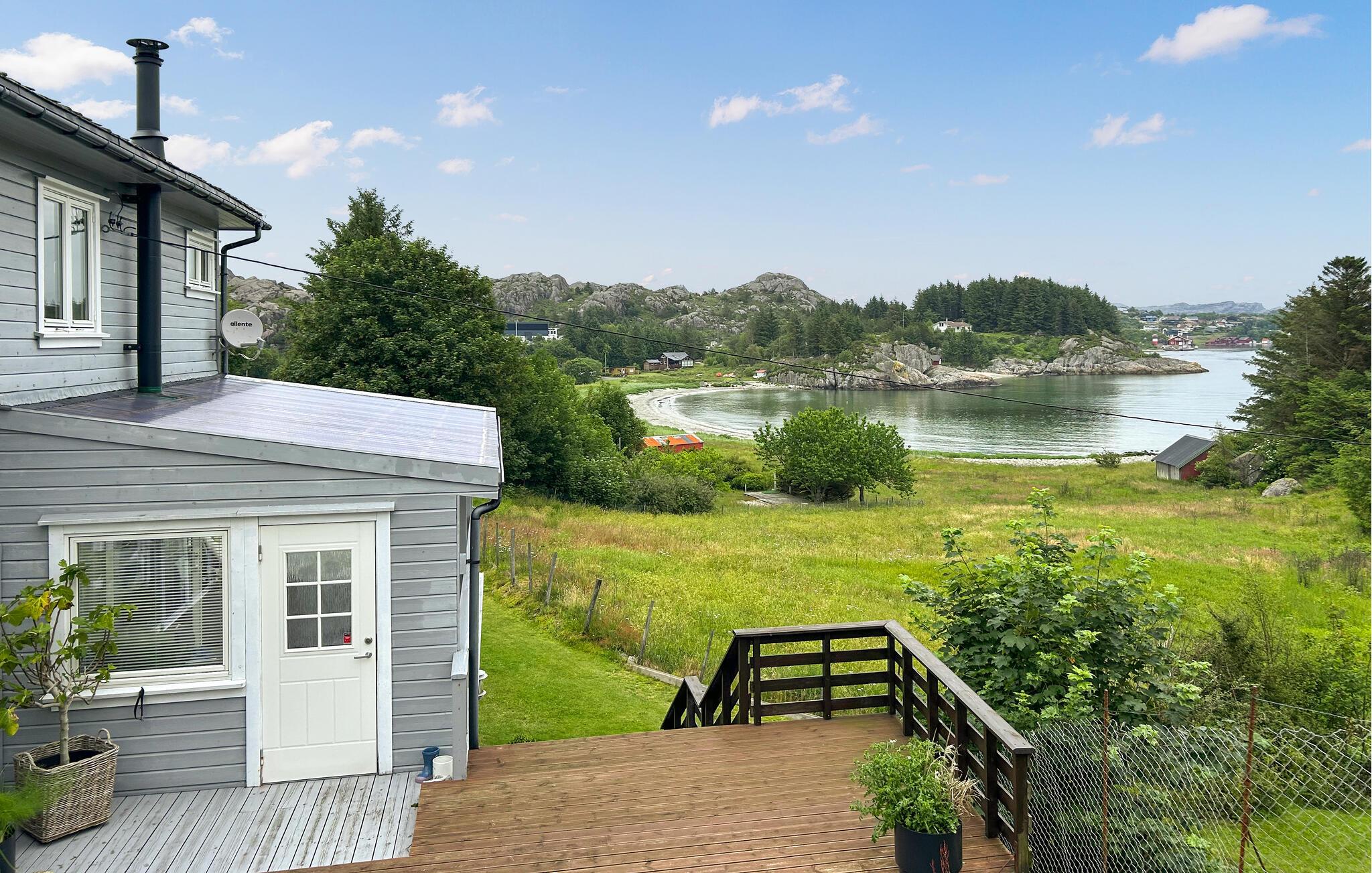 Dette rummelige og stilfulde feriehus i Hellvik, lige syd for Stavanger, byder på en vidunderlig udsigt over fjorden. Huset ligger idyllisk i en stille bugt, kun få meter fra nærmeste strand, som har en skøn blanding af rolig afslapning og skønne naturaktiviteter. Begynd jeres dage med en afslappet morgenmad i udestuen og nyd den vidstrakte udsigt over vandet gennem de store vinduer. Den komfortable stue inviterer jer også til at nyde livet og have det rart, hvad enten det er med en god bog eller en spændende film.