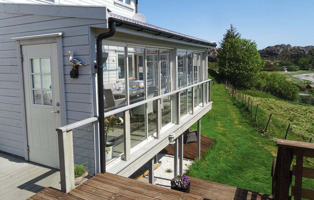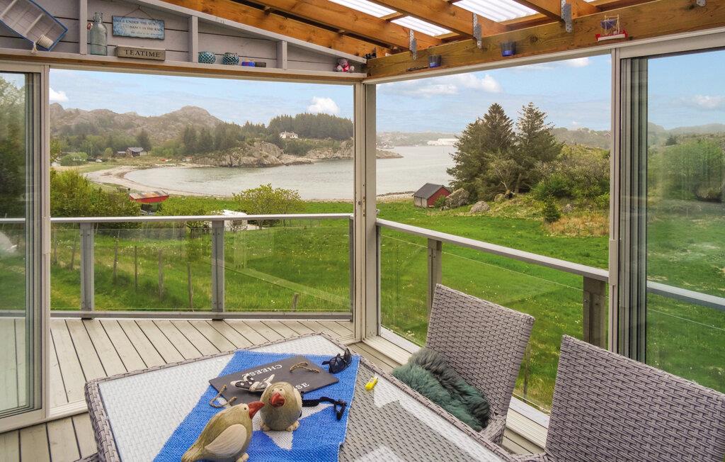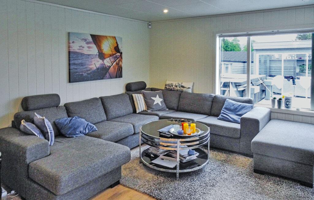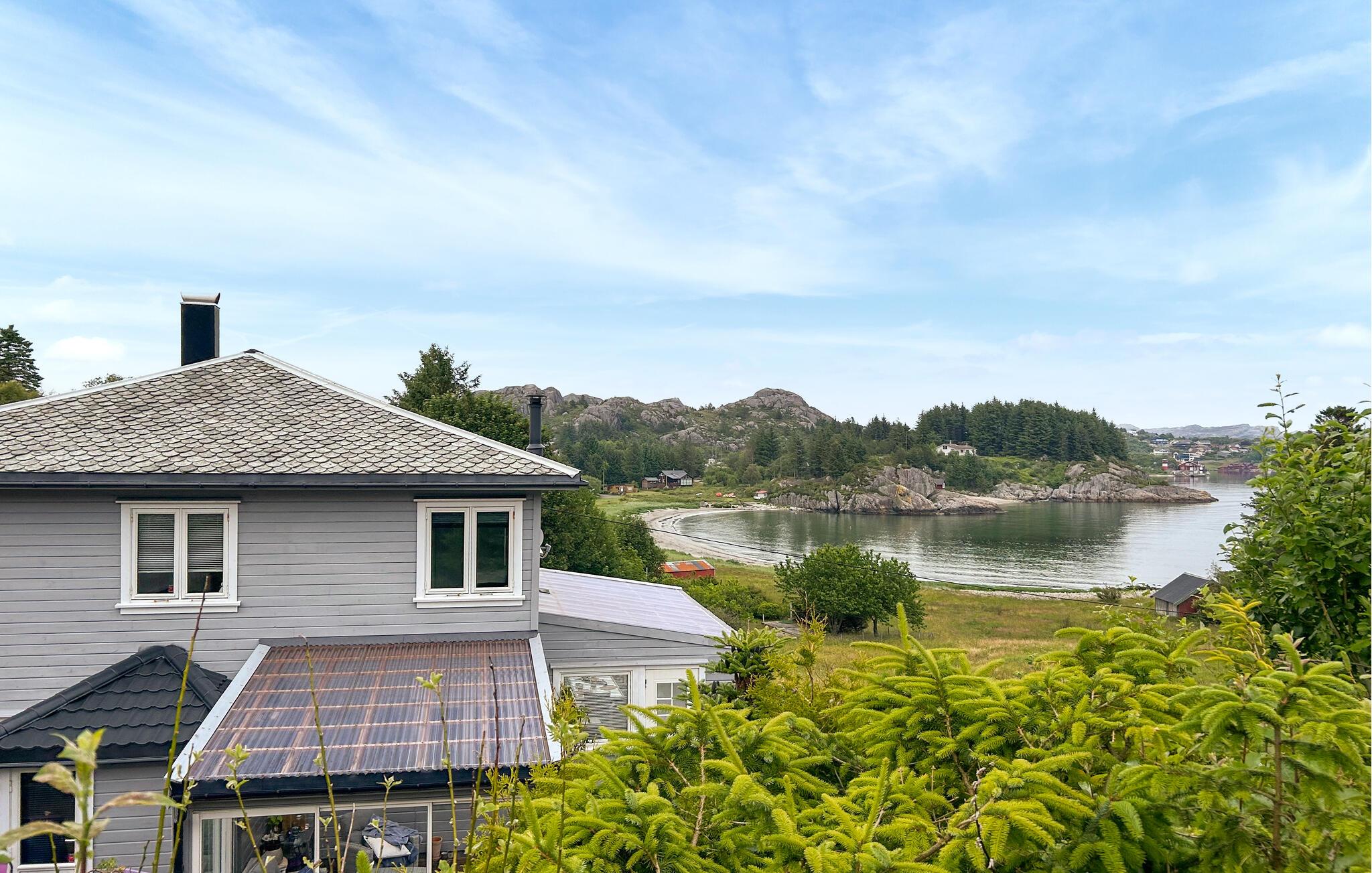 Dette rummelige og stilfulde feriehus i Hellvik, lige syd for Stavanger, byder på en vidunderlig udsigt over fjorden. Huset ligger idyllisk i en stille bugt, kun få meter fra nærmeste strand, som har en skøn blanding af rolig afslapning og skønne naturaktiviteter. Begynd jeres dage med en afslappet morgenmad i udestuen og nyd den vidstrakte udsigt over vandet gennem de store vinduer. Den komfortable stue inviterer jer også til at nyde livet og have det rart, hvad enten det er med en god bog eller en spændende film.
