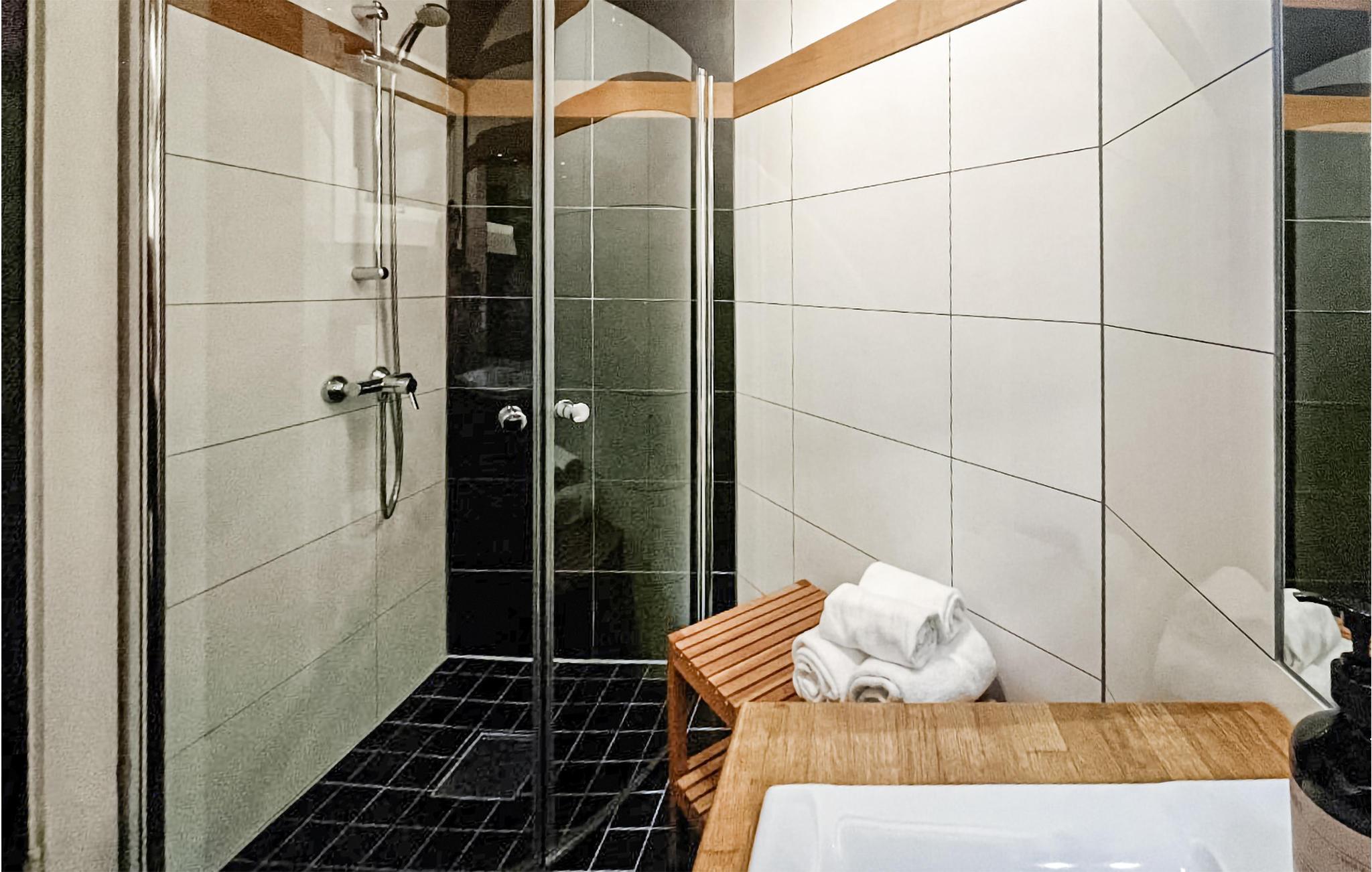 Badeværelse (nr. 1) - WC. Varmt og koldt vand. Bruser
