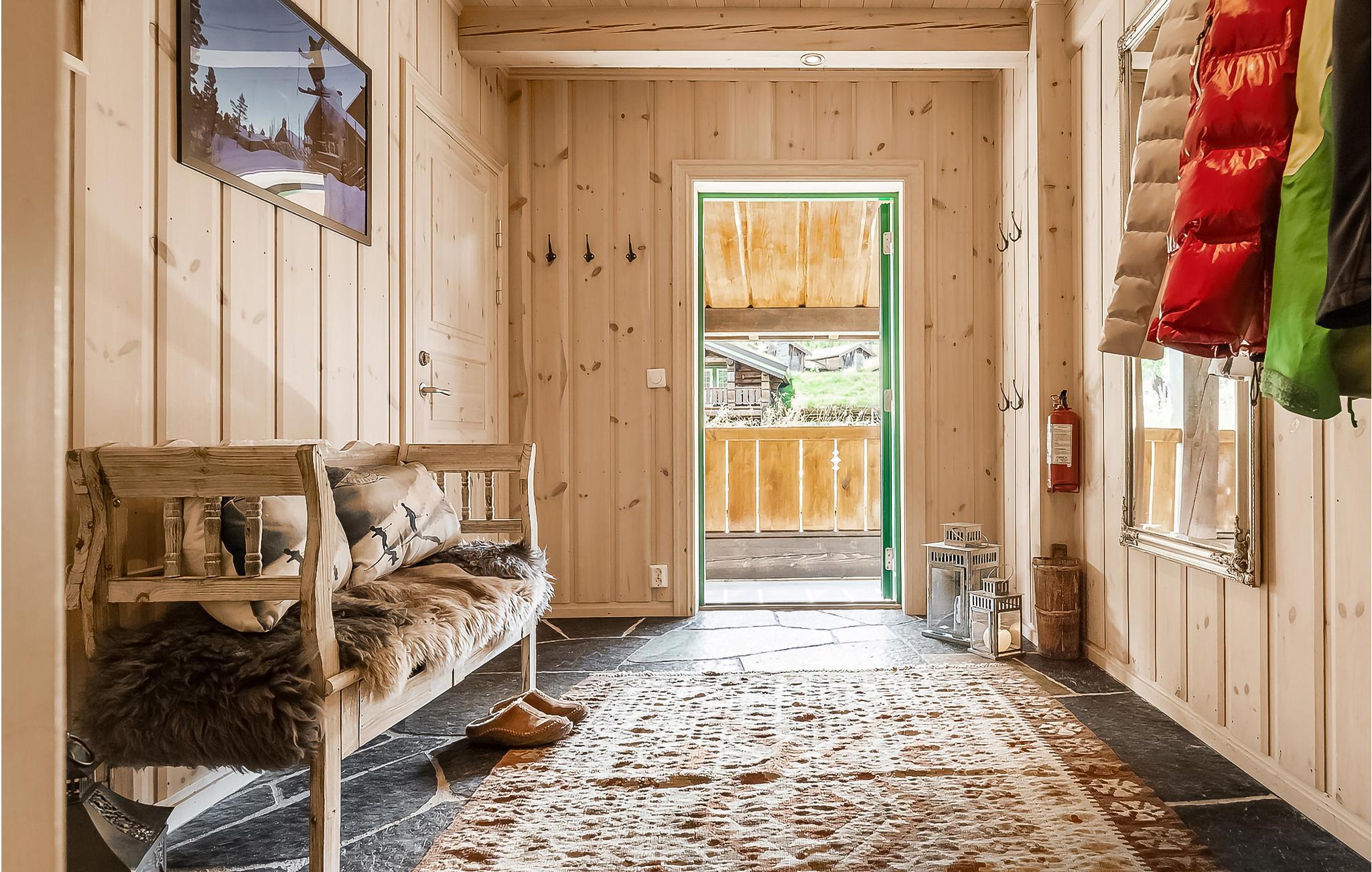 Dette charmerende feriehus i hjertet af Hemsedal kombinerer klassisk norsk arkitektur med moderne komfort. Det hyggelige træinteriør skaber en varm og indbydende atmosfære, mens det store spisebord byder på ideelle forhold til fælles måltider og spilleaftener. Efter en aktiv dag kan I slappe af i den rummelige opholdsstue eller nyde den klare bjergluft på terrassen.