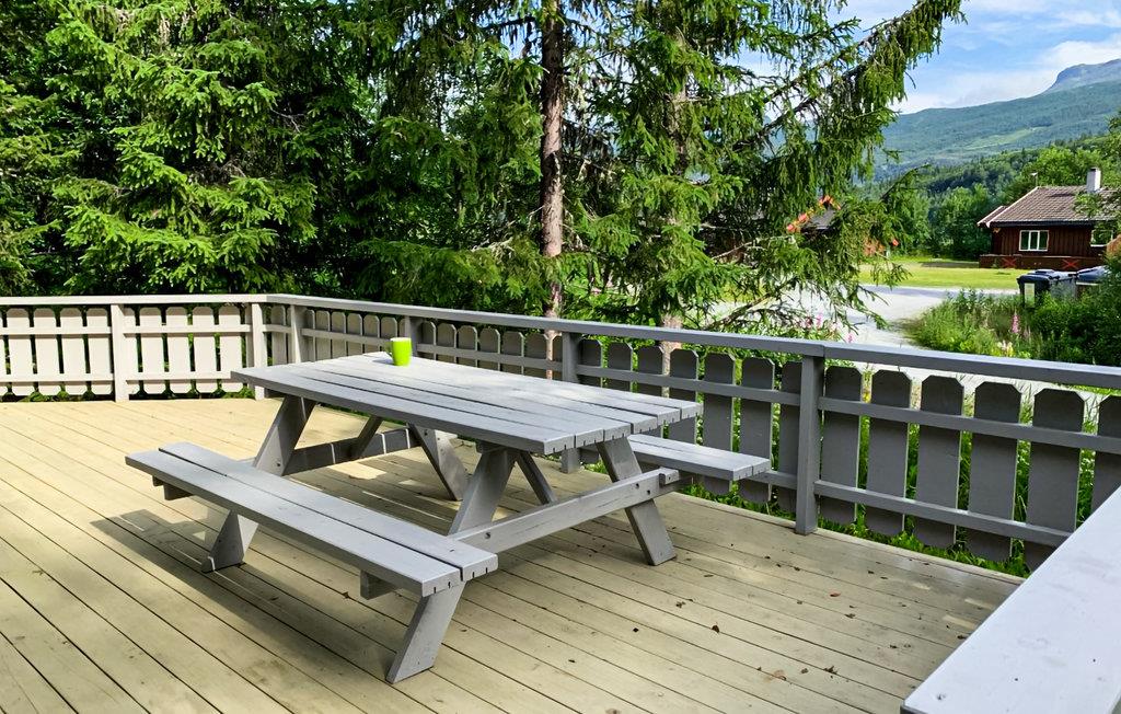 Udendørsområdet byder på en stor terrasse med siddepladser, der er ideelle til afslappede stunder i den friske bjergluft. Nyd den fantastiske udsigt over de omkringliggende bjerge og den rolige natur. Børnene har masser af plads til leg, og hele familien kan sammen udforske omgivelserne.