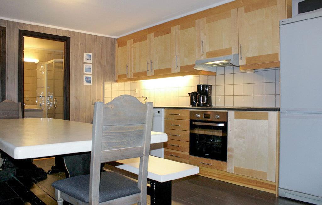 Denne hyggelige ferielejlighed er det ideelle tilflugtssted for alle, der ønsker at kombinere afslapning og aktivitet i en imponerende natur. Lav mad sammen i det hyggelige køkken og nyd dagens måltider ved det store spisebord. Efter en lang dag i den friske luft kan I tænde brændeovnen, slappe af i den komfortable sofa eller forkæle jer selv med hyggelige stunder i saunaen.