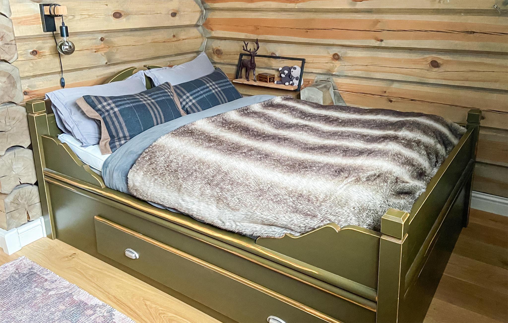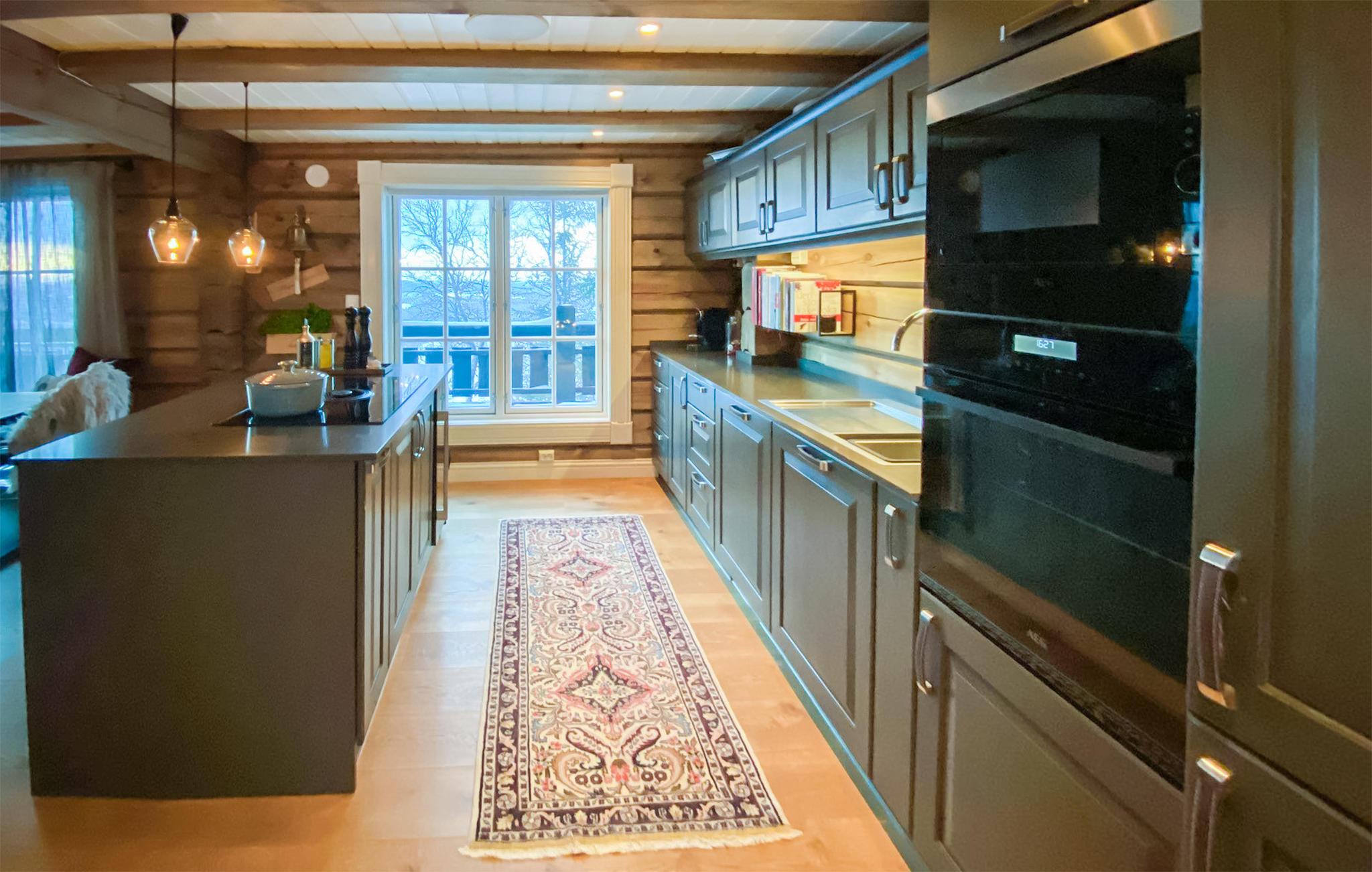Denne rummelige bjælkehytte er stilfuldt indrettet og indbyder til en fantastisk ferie med sjove aktiviteter og dejlige naturoplevelser. Der er mange hyggekroge i hytten, hvor man kan slå sig ned med en snørrende roman eller spille kort- og brætspil. Hytten tilbyder et kæmpe køkken, hvor mange gæster kan være i gang samtidigt om at tilberede lækre feriemåltider. Opholdsstuen er ligeledes et højdepunkt. Her kan I slappe dejligt af i bløde møbler, mens flammerne knitrer i brændeovnen.