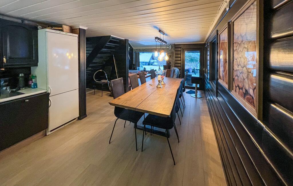 Dette komfortable og smagfulde feriehus tilbyder jer masser af plads til at dele den rustikke charme i værelserne med familien. Hold hyggelige madlavningsaftener i det åbne køkken, spis med en stor gruppe ved det indbydende spisebord, forkæl jer selv med afslappende øjeblikke i saunaen efter en lang dag i den friske luft, og lad pejsen sørge for ekstra hygge under afslappende filmaftener i den store sofagruppe.