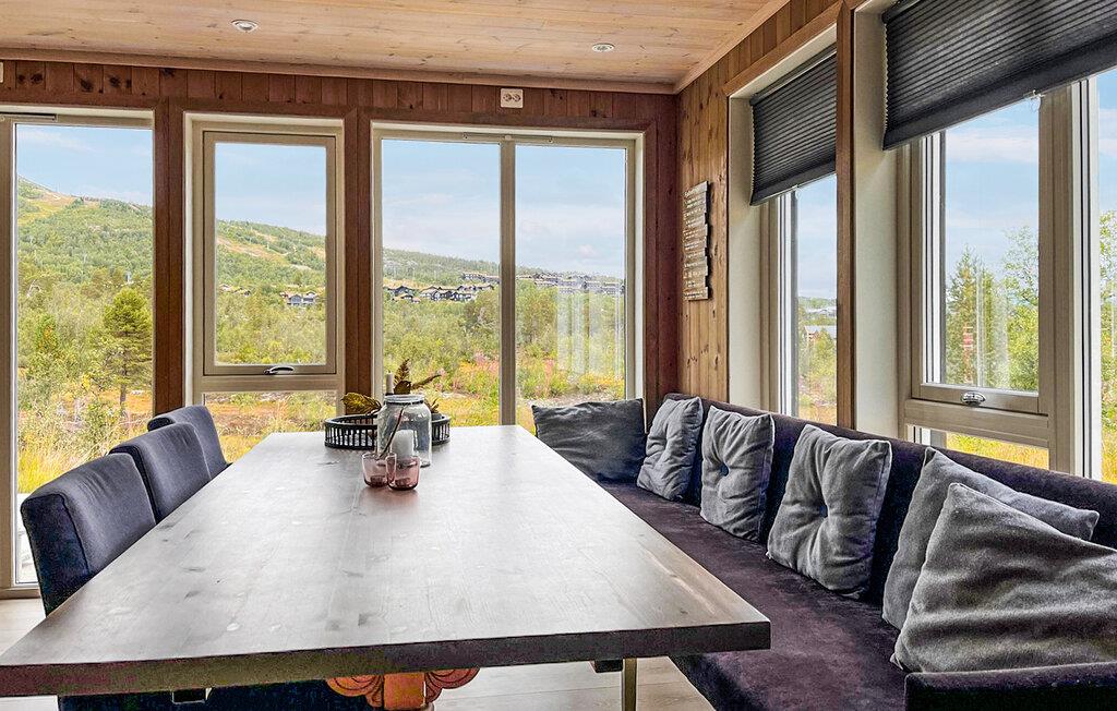 Dette charmerende hus tilbyder rigelig plads til en afslappende ferie og en imponerende udsigt over det bjergrige landskab. Læn jer tilbage i de komfortable sofaer, nyd den tætte beliggenhed til naturen, og nyd den hyggelige atmosfære præget af varmt træ og kærlige detaljer. Tilbered et lækkert måltid, og nyd det i godt selskab.