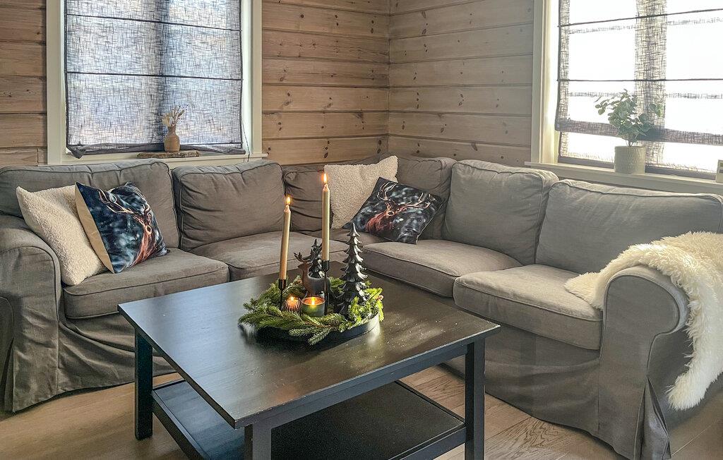 Dette moderne og hyggelige feriehus ligger smukt beliggende i et imponerende bjerglandskab. Træd indenfor og nyd den varme atmosfære skabt af lyse trævægge, komfortable indretningsløsninger og smagfuld indretning. Læn jer tilbage i den rummelige stue på den komfortable sofa eller i lænestolen ved brændeovnen, som giver hyggelig varme på køligere dage. Lav mad sammen i det smukke køkken med mørke skabe og indbydende spiseplads. Store vinduer lukker masser af lys ind og tilbyder udsigt over det omkringliggende landskab.