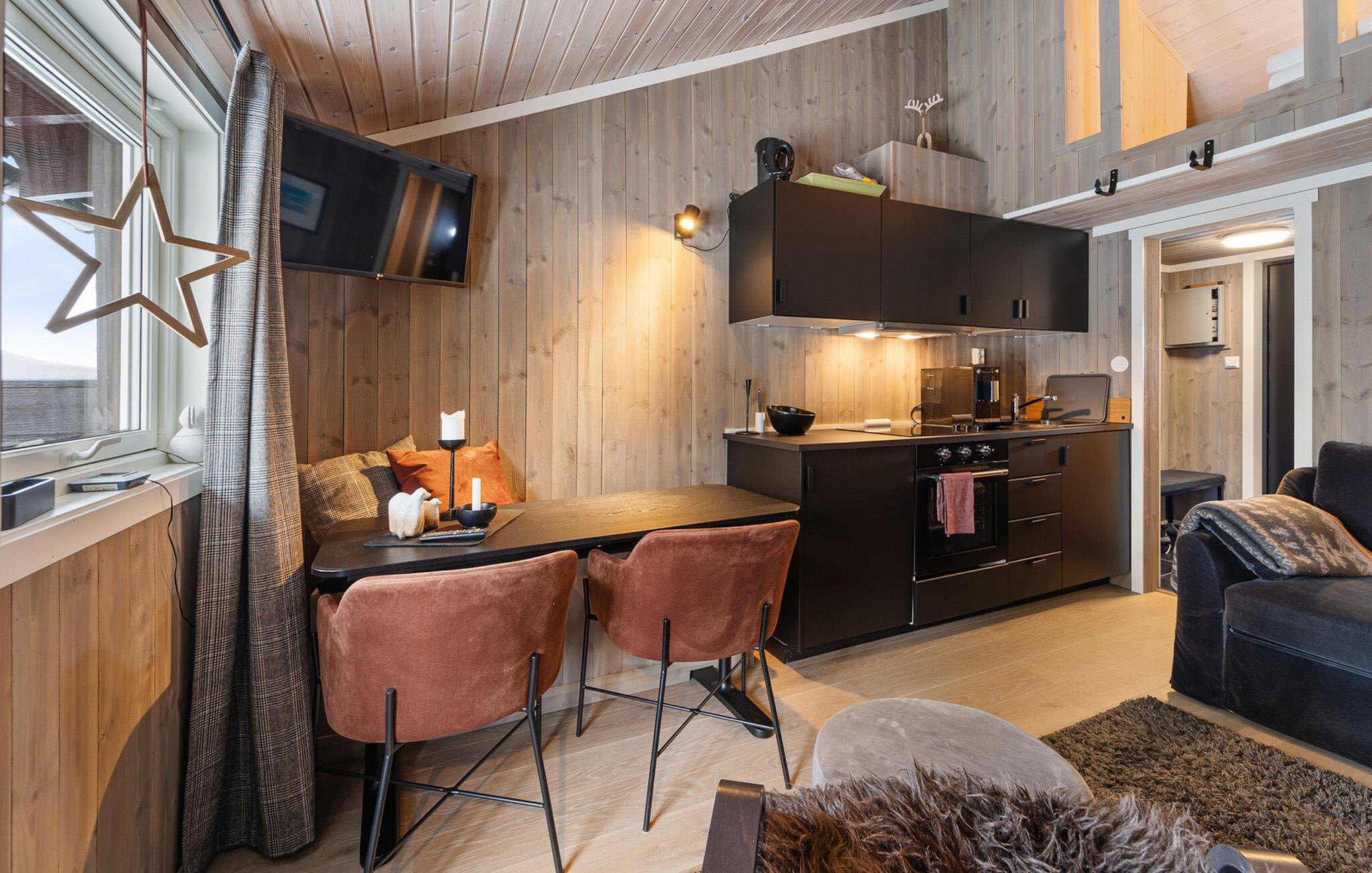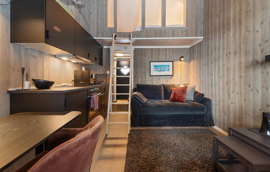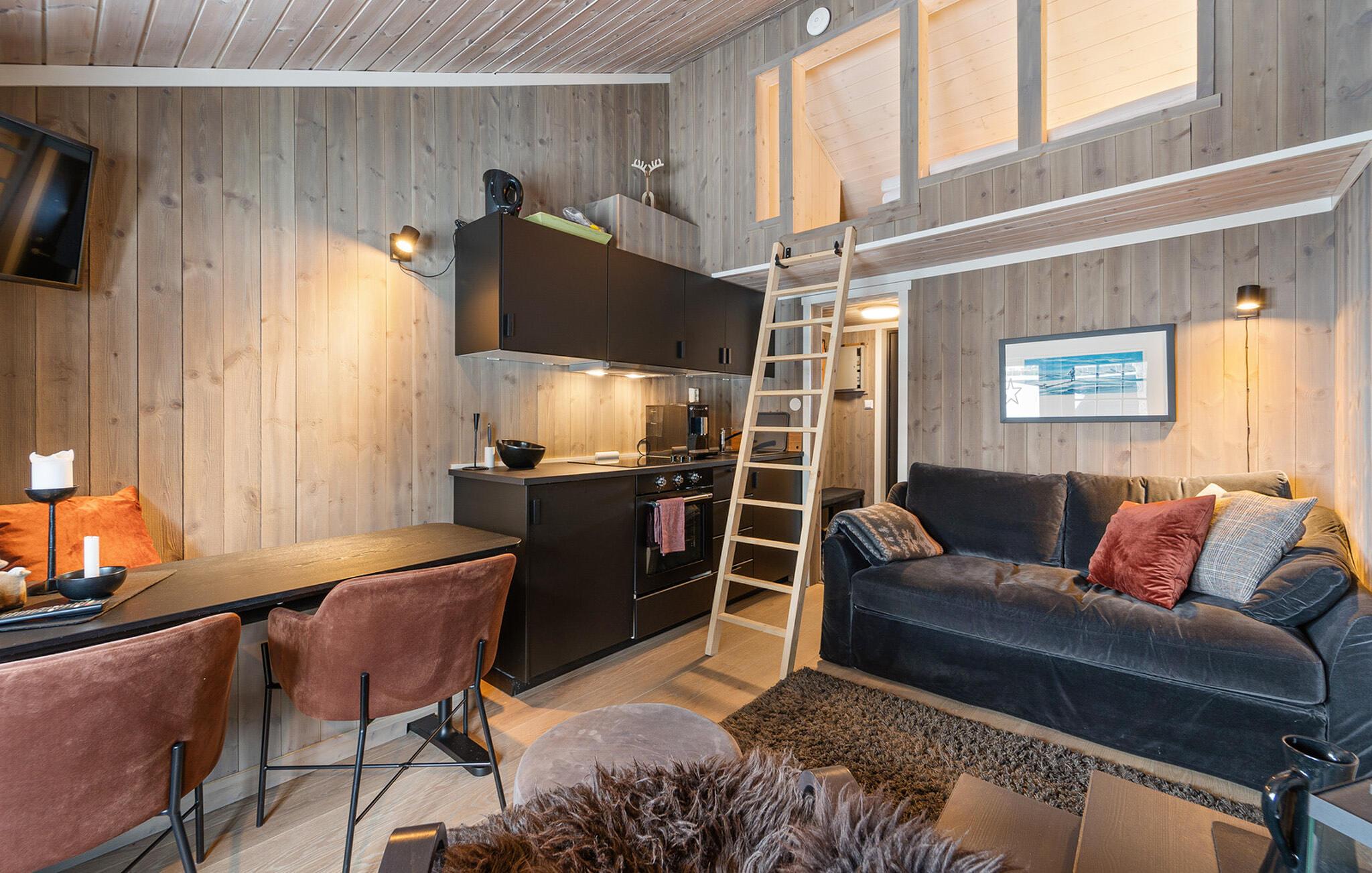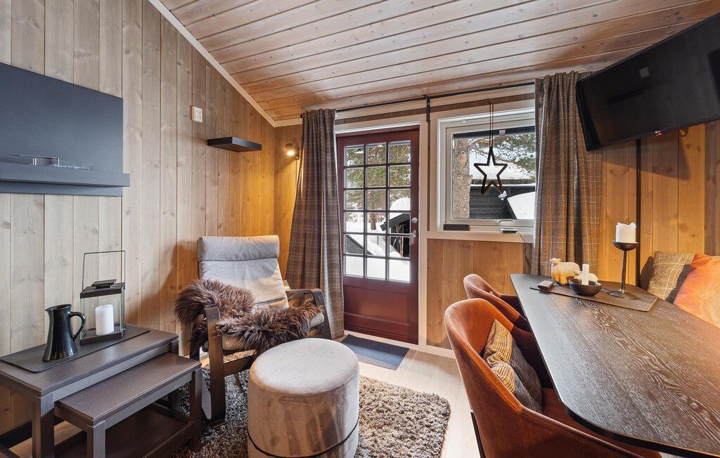 Dette hyggelige tilflugtssted lægger op til harmoniske timer midt i et smukt landskab. Varme trævægge, bløde tekstiler og smagfuld indretning skaber en hyggelig atmosfære her. Tilbered jeres måltider i det åbne køkken og nyd dem i den hyggelige spiseplads. Læn jer tilbage i sofaen, læs en bog eller slap af med en film, mens den knitrende brændeovn afrunder stemningen.