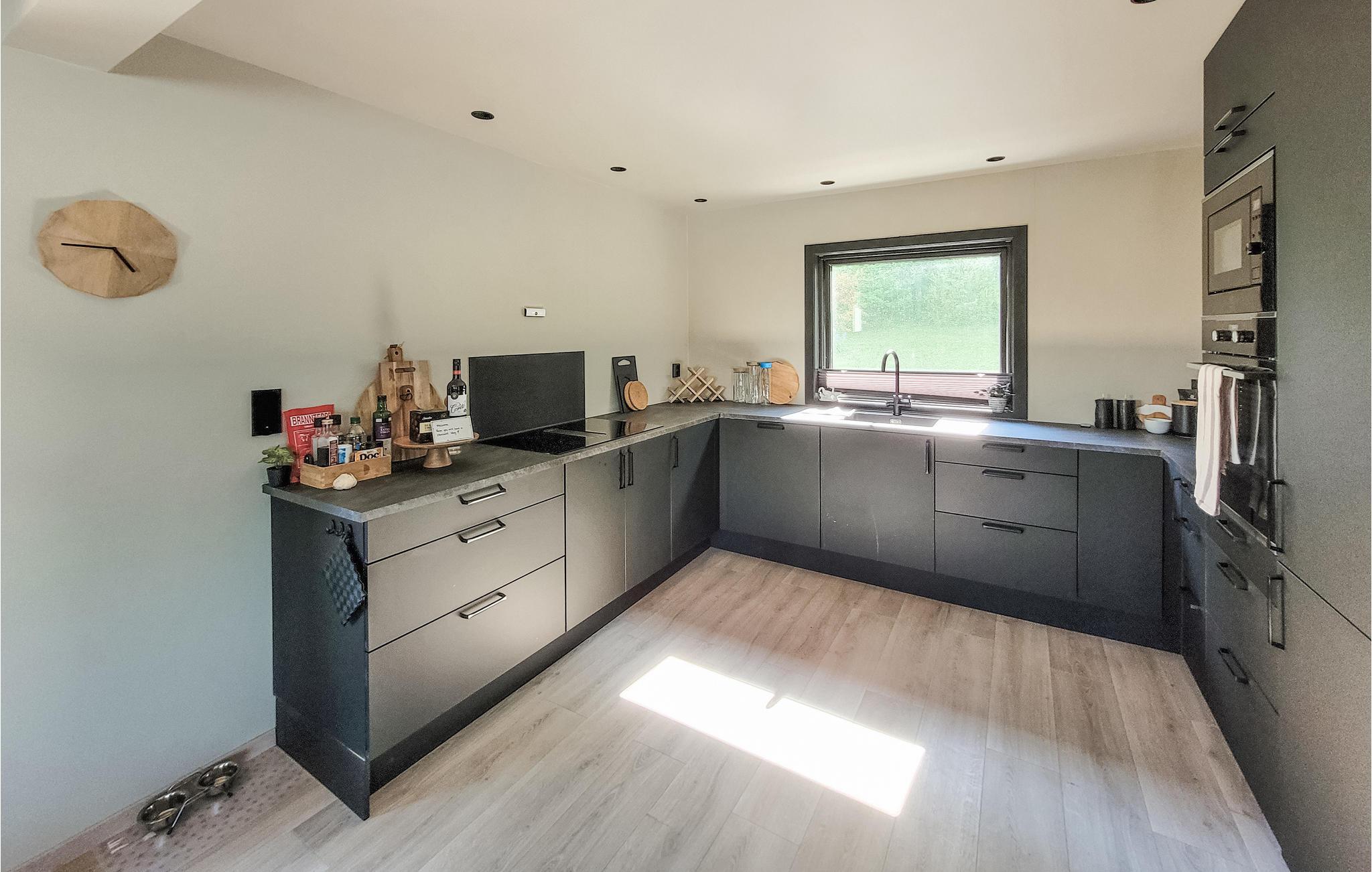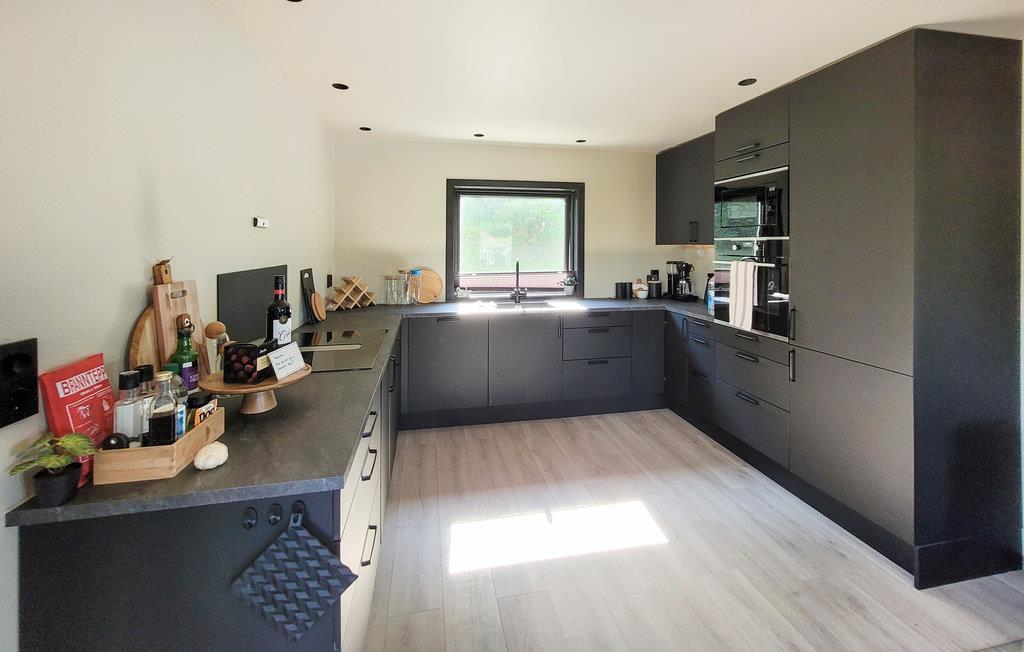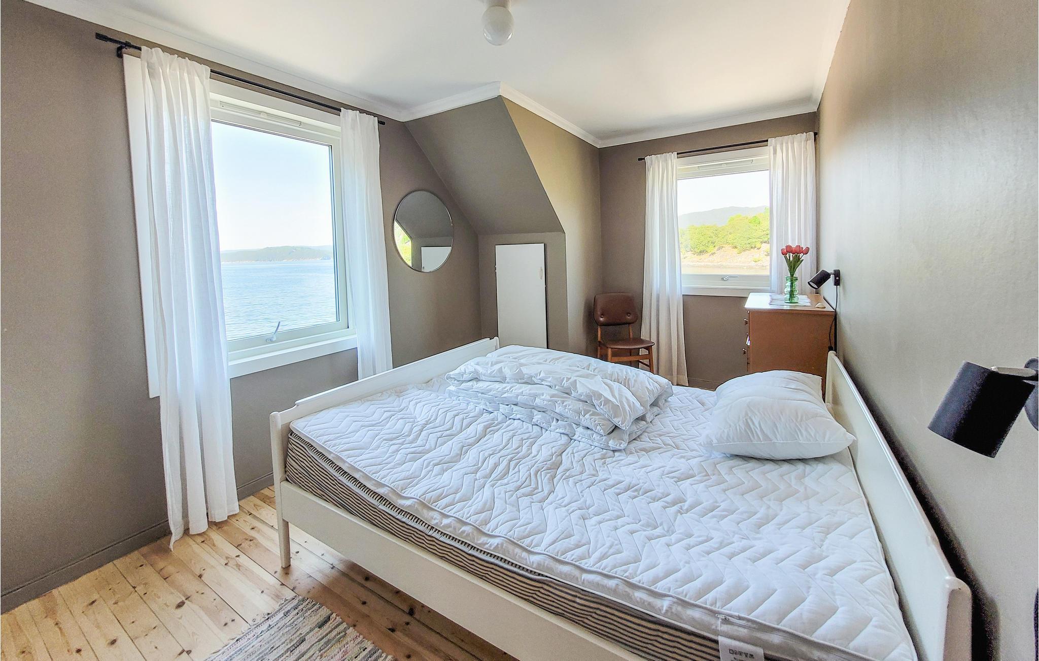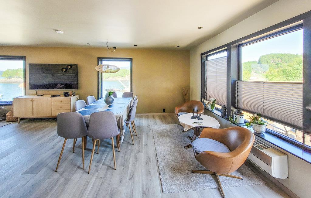 Kan man ønske sig ret meget mere? Dette skønne feriehus har en helt fantastisk beliggenhed lige ned til en fjord. Her kan I se frem til nogle dejlige dage med familien, hvor I omgiver jer med komfort og gode kvalitetsløsninger. Find jer til rette i den hyggelige stue, hvor I kan nyde den smukke fjordudsigt fra de store vinduespartier.