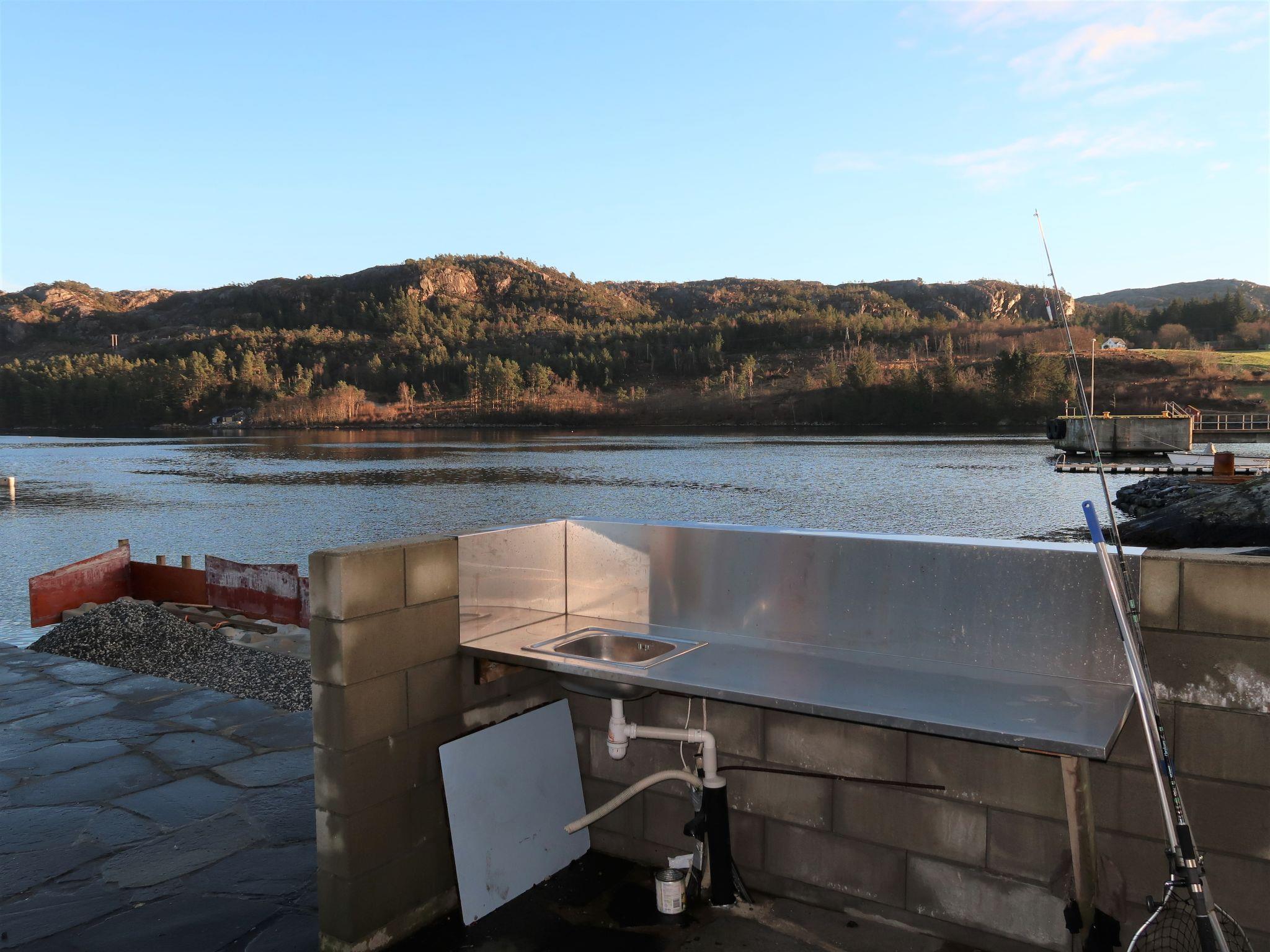 Certified fishing house "Jektastøo", built in 2016. In the hamlet Huglo 17 km from the centre of Leirvik, 60 km from the centre of Bergen, 72 km from the centre of Haugesund, 5 m from the sea, 5 m from the fijord. Fish-processing table. Fish-processing table. Motor boat (on order), parking (for 2 cars). Grocery 200 m, bus stop "Nordhuglo" 300 m, ferry 200 m, sandy beach 1 km, indoor swimming pool 14 km. Fishing possibilities 5 m.