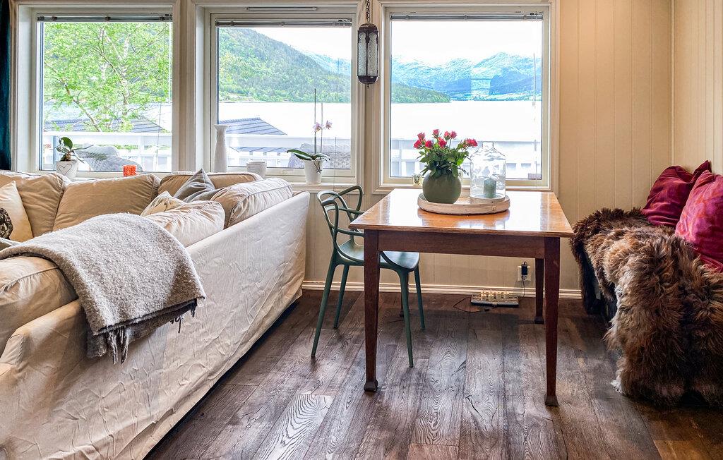 I solskinsvejr kan I sidde på den rummelige terrasse og starte dagen med en lækker morgenmad, mens I nyder den fantastiske udsigt over fjorden og de omkringliggende bjerge. Afslut dagen med en hyggelig grillfest, og hvis I er heldige, kan I måske endda få øje på det fascinerende nordlys på den kulsorte himmel.
