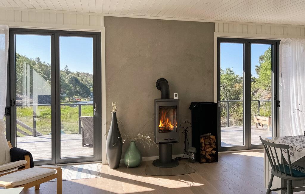 Dette moderne feriehus giver jer en fantastisk beliggenhed lige ved vandet, omgivet af majestætiske klipper og tætte skove. Begynd jeres dage med morgenmad på den store terrasse, mens I stirrer ud over den stille bugt. Feriehuset er noget helt særligt på grund af sin smagfulde, moderne indretning. Glæd jer til den hyggelige stemning i den åbne opholdsstue, som lukker masser af lys ind gennem de store vinduespartier og giver jer følelsen af at være midt i naturen. Mens aftenen er kølig, kan I krølle jer sammen ved pejsen og slappe af efter en dag med udforskning.
