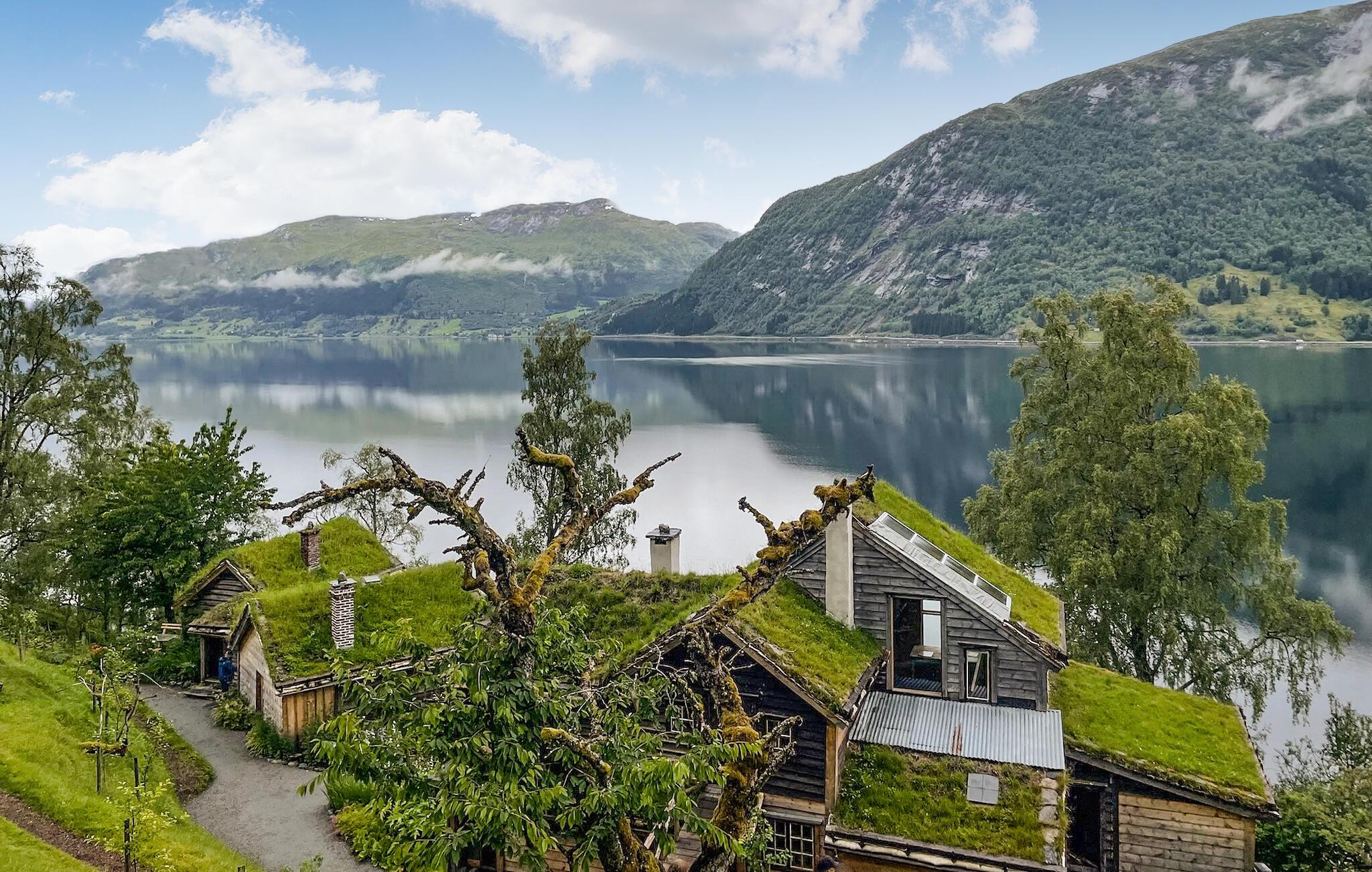Dette charmerende feriehus har udsigt over søen Jølstravatnet.